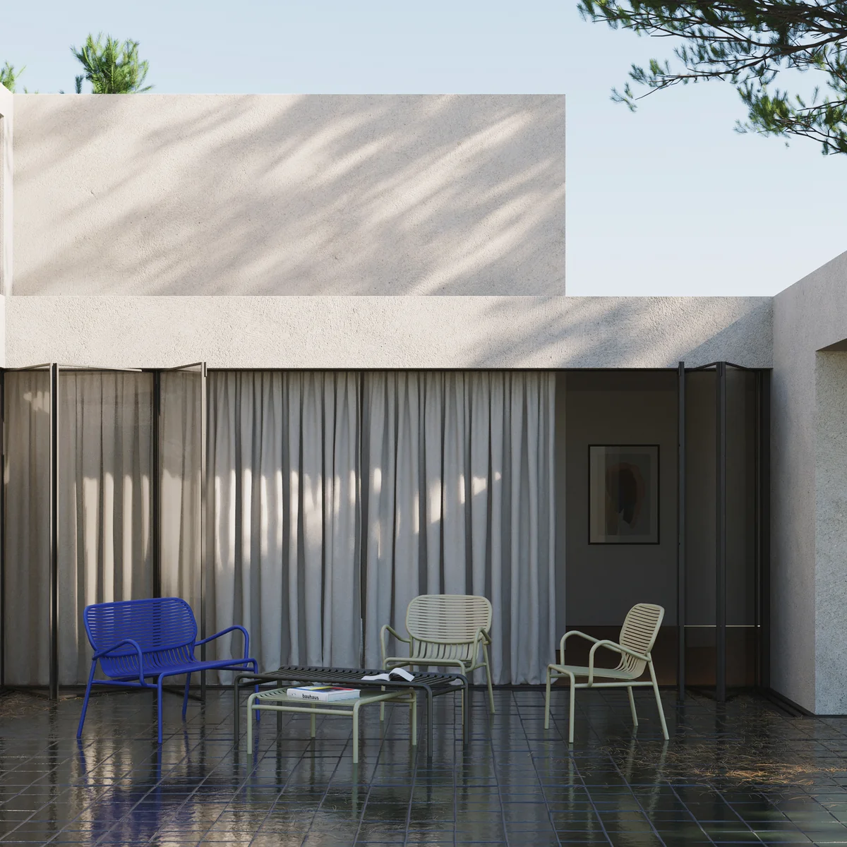 Le fauteuil Week-End de Petite Friture est un meuble d'extérieur élégant qui offre un excellent confort grâce à son large dossier et à ses accoudoirs généreux. Faisant partie de la série du même nom -conçue par le studio BrichetZiegler-, le fauteuil se combine parfaitement avec d'autres chaises, tables et bancs du même style.