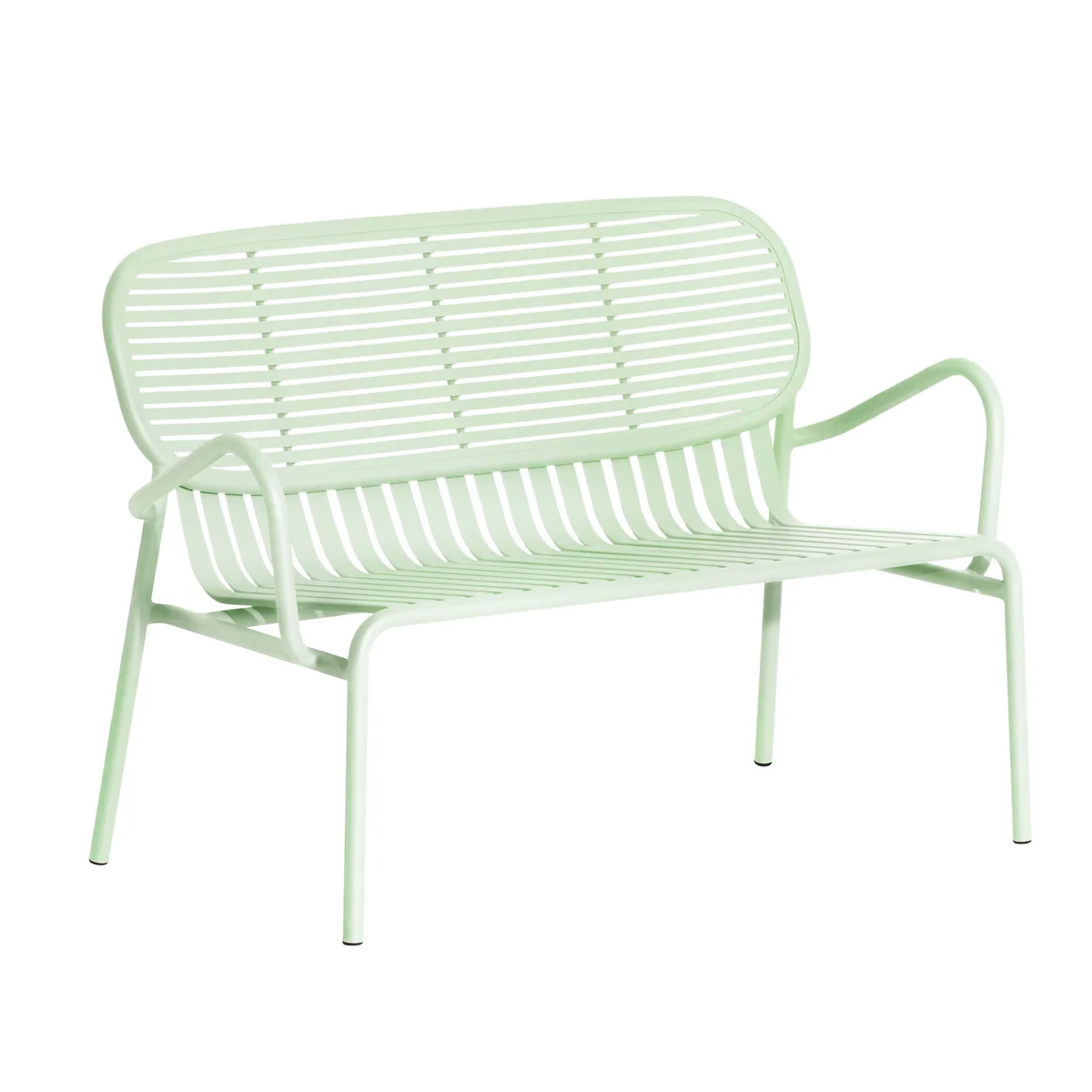 Ce canapé fait partie de la Week-End série de Petite Friture , qui se compose d'une série de meubles de jardin esthétiques et pratiques. Conçus par le studio de design BrichetZiegler, tous les produits de la série se distinguent par leur grande résistance aux intempéries et leur structure lamellaire raffinée.