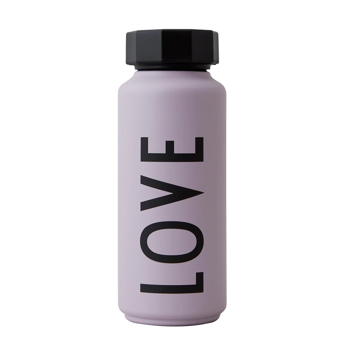 Le design de la bouteille thermos apparaît dans un look rétro stylé avec des inscriptions de différentes couleurs. La typographie est signée Arne Jacobsen et a été conçue dès 1937, à l'origine pour la signalisation de l'hôtel de ville d'Aarhus. Le design sans fioritures n'a rien perdu de son charme jusqu'à aujourd'hui et orne désormais de nombreux produits, notamment de Design Letters .