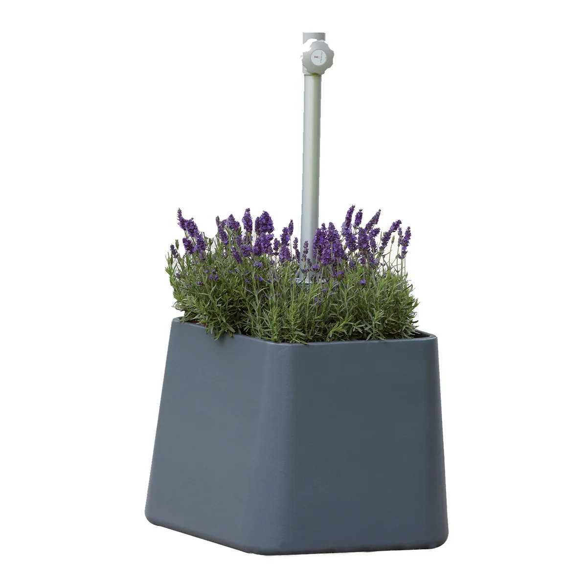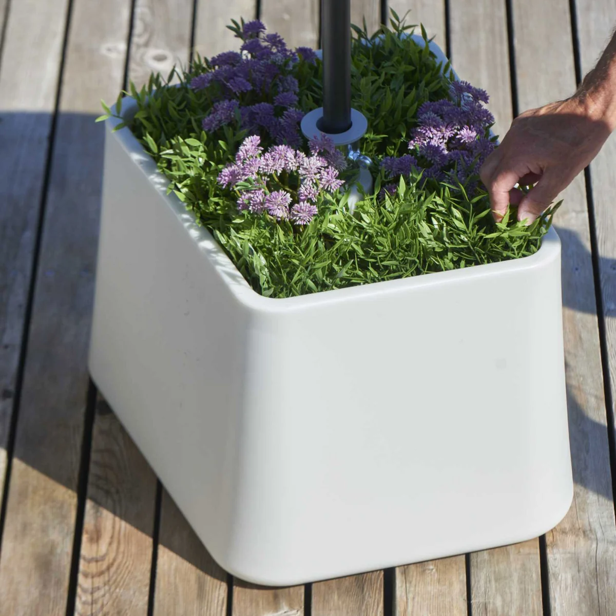 Le pot en polyéthylène peut aussi bien être utilisé comme porte-parapluie que pour les plantes. Le terreau dans le pot et les racines des plantes assurent une stabilité supplémentaire au parasol. Grâce aux trous dans le fond, l'eau ne stagne pas dans le pot.