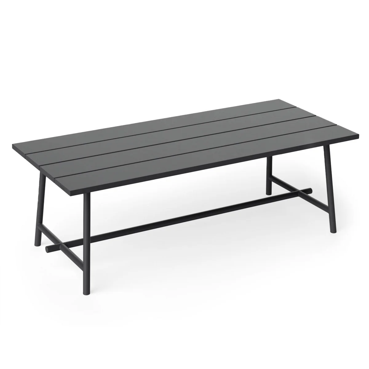 La Fred's Table incarne un mélange de familiarité et de modernité, de robustesse et d'élégance. Les entretoises du plateau de table peuvent sembler massives, mais elles sont en grande partie creuses, car elles sont fabriquées à partir de profilés spéciaux en aluminium. Cela rend la table à la fois super stable et suffisamment légère pour être déplacée. Grâce à ses pieds en aluminium, cette table de jardin pour 6 personnes est bien stable sur le sol et peut être rangée dans ta remise en hiver, ce qui permet de gagner de la place, car les pieds se replient facilement. Mais Fred peut aussi rester dehors toute l'année sans problème, car elle est résistante aux intempéries.