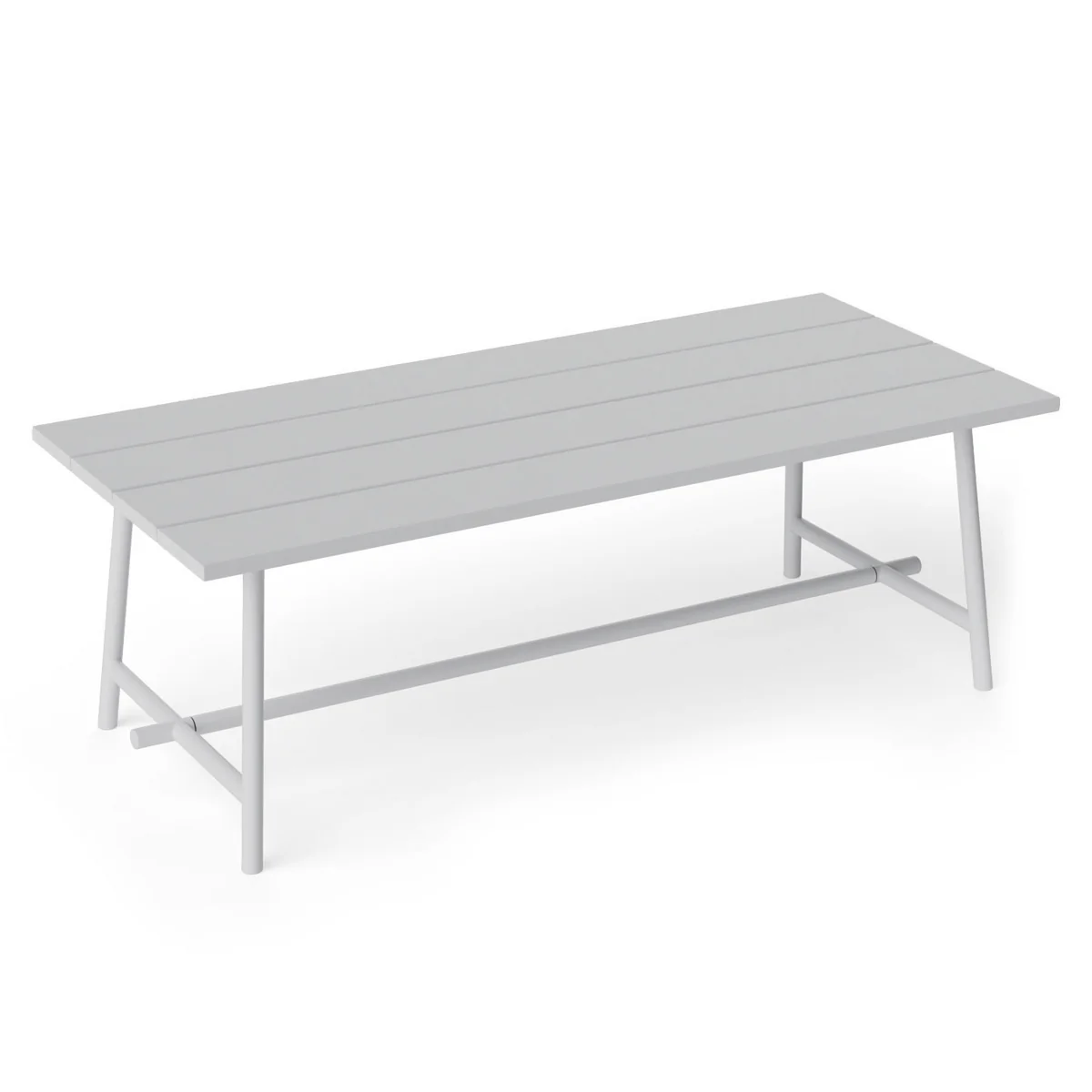 La Fred's Table incarne un mélange de familiarité et de modernité, de robustesse et d'élégance. Les entretoises du plateau de table peuvent sembler massives, mais elles sont en grande partie creuses, car elles sont fabriquées à partir de profilés spéciaux en aluminium. Cela rend la table à la fois super stable et suffisamment légère pour être déplacée. Grâce à ses pieds en aluminium, cette table de jardin pour 6 personnes est bien stable sur le sol et peut être rangée dans ta remise en hiver, ce qui permet de gagner de la place, car les pieds se replient facilement. Mais Fred peut aussi rester dehors toute l'année sans problème, car elle est résistante aux intempéries.