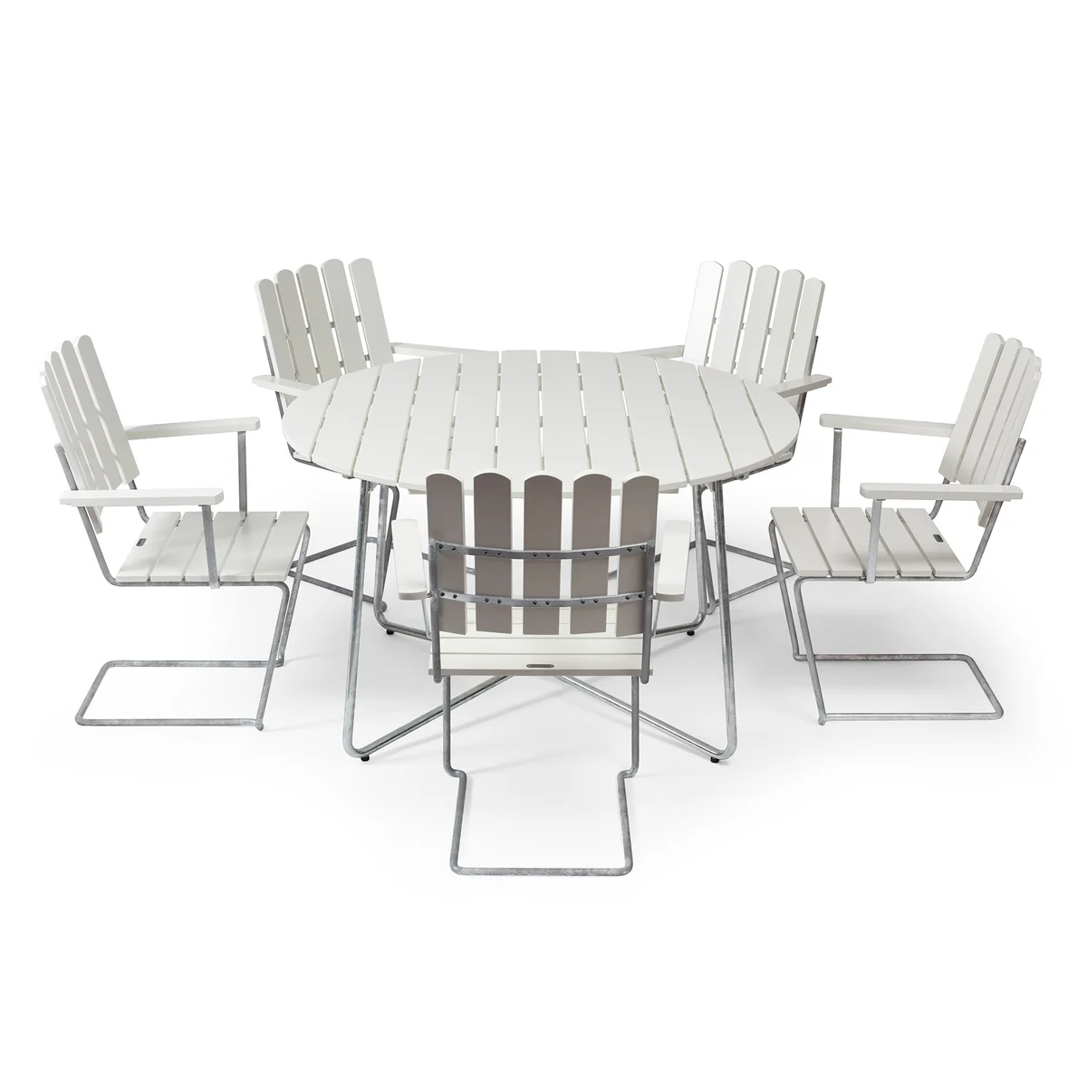 La table de jardin 9A de la série classique de Grythyttan dispose d'un piètement amovible. Elle est basée sur le design original d'Artur Lindqvist et est disponible en deux tailles. Cette table est parfaite pour le jardin et la terrasse et se combine parfaitement avec les modèles de chaises A2 ou 1 .
