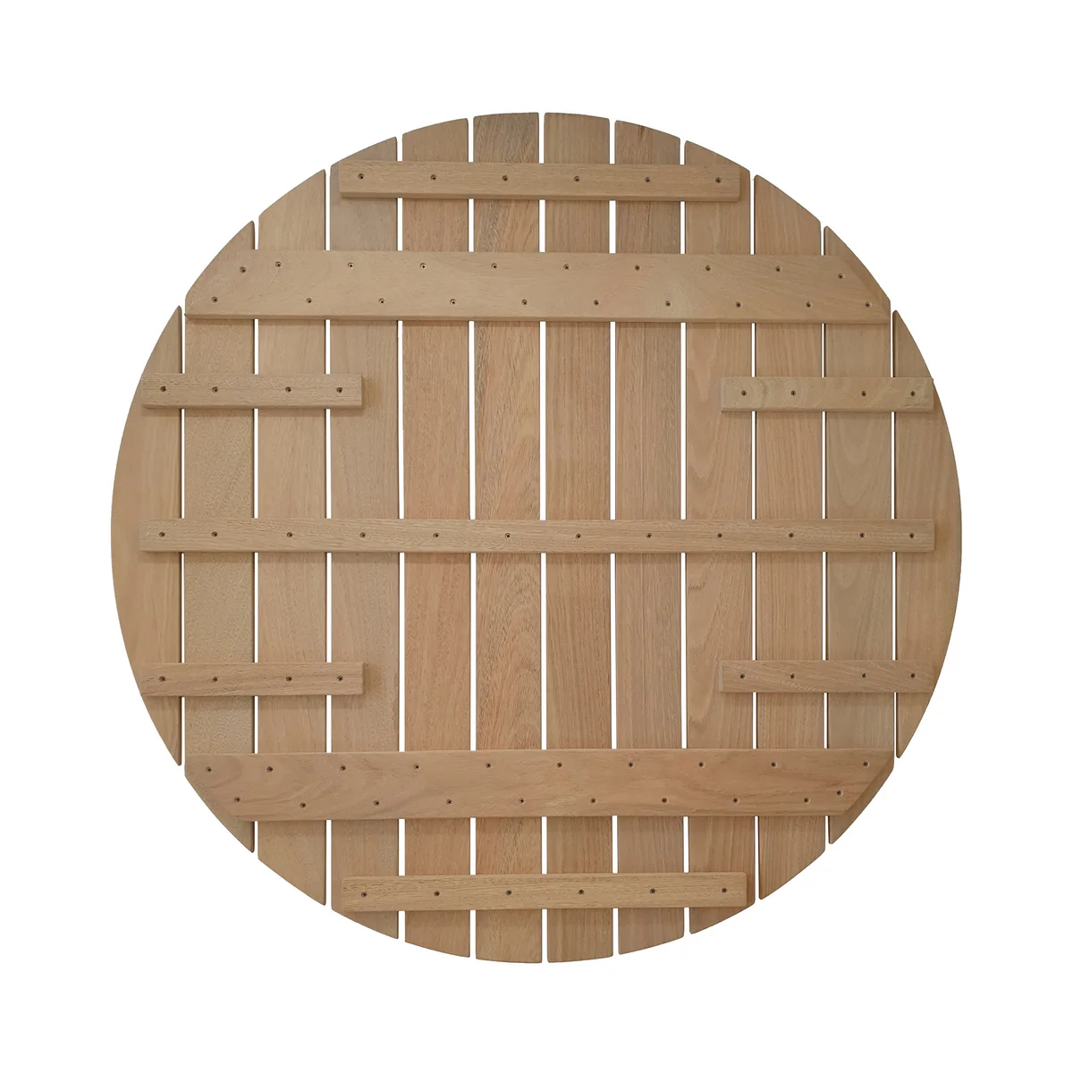 Table de jardin ronde en bois et acier galvanisé à chaud.