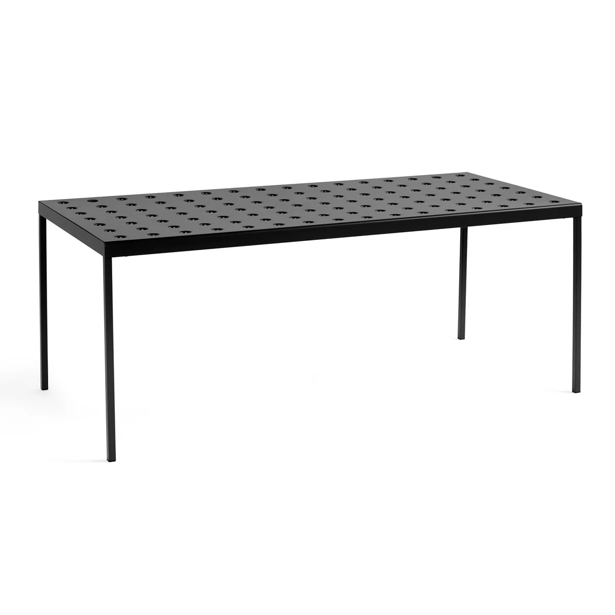 La table Balcony table de salle à manger de Ronan et Erwan Bouroullec pour HAY est une table de salle à manger élégante pour l'extérieur. Le design simple et rectangulaire reçoit une touche décontractée grâce à ses pieds élancés. Les nombreux trous sur la surface de la table confèrent de la stabilité à la construction, ce qui lui donne en même temps une expression particulière. Balcony La table est fabriquée en acier revêtu par poudre et est dotée d'un revêtement qui garantit une résistance et une durabilité optimales. La table de salle à manger peut ainsi être utilisée de manière idéale à l'extérieur.