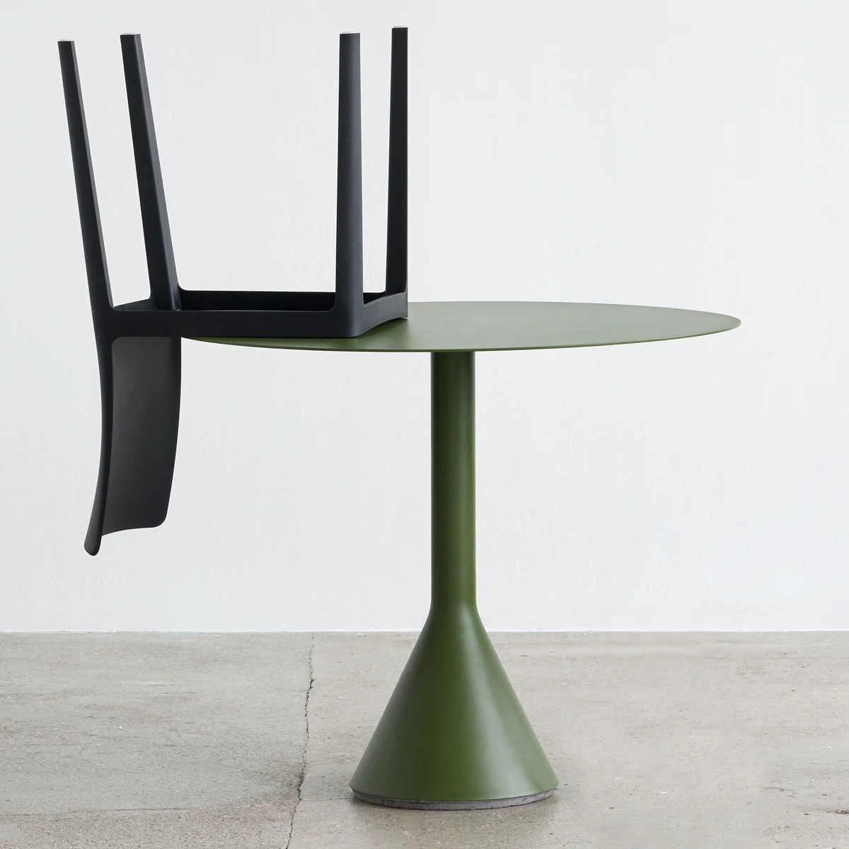 En complément de la série Palissade très appréciée de HAY, une table de jardin ronde appelée Cone fait désormais partie de la collection. La table se distingue par sa base en forme de cône stabilisée par du béton (Cone en anglais). Pourtant, la table n'a rien d'encombrant. Avec le plateau de table ultrafin en acier, on obtient un langage de design plutôt graphique, que l'on retrouve également dans le reste de la série conçue par Ronan & Erwan Bouroullec.