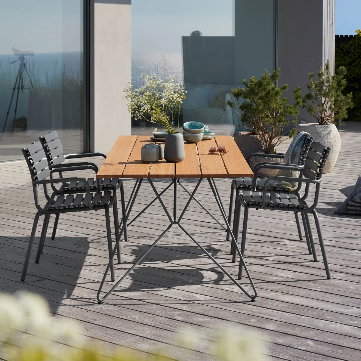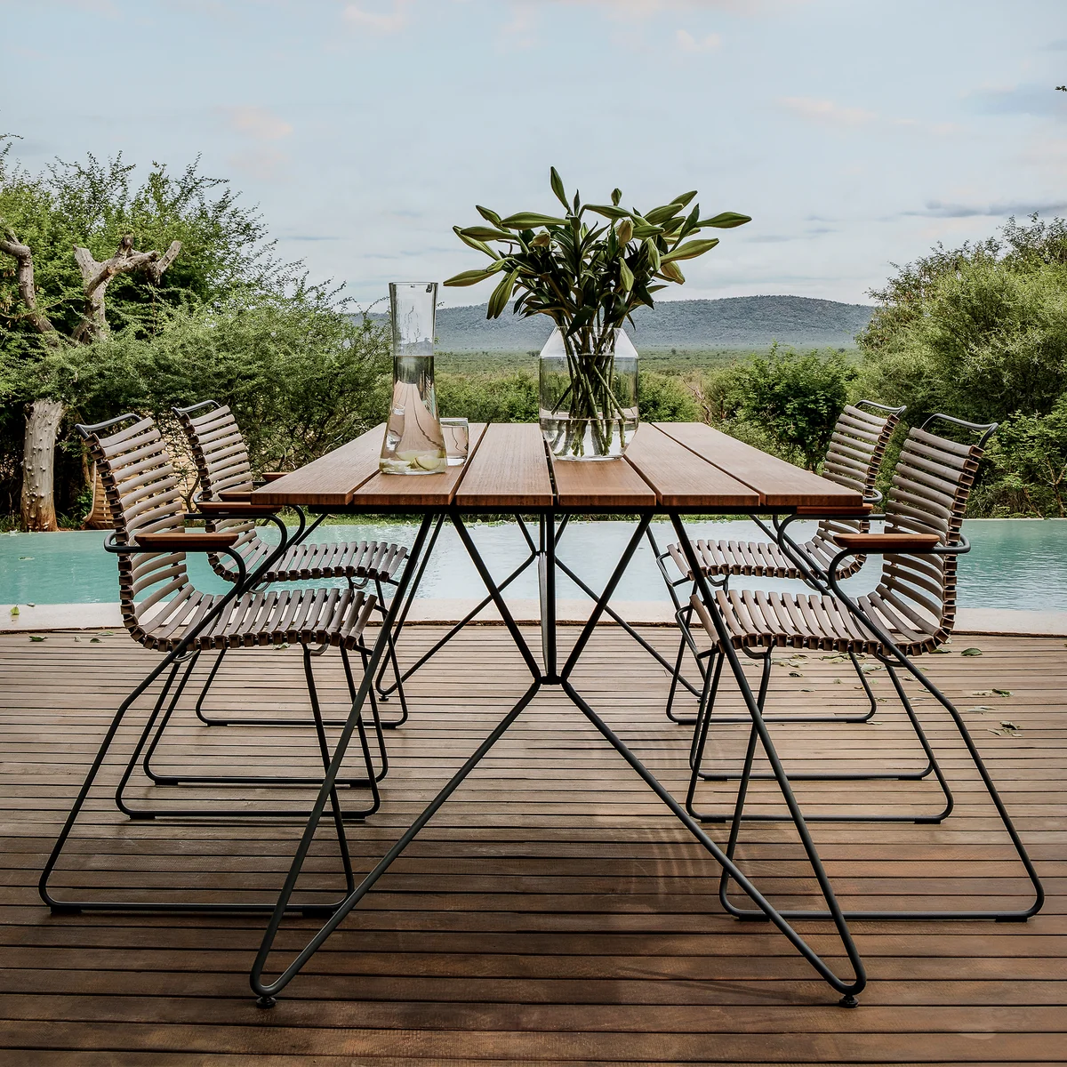 La table SKETCH Outdoor de HOUE allie élégance et design fonctionnel, idéal pour toute terrasse ou jardin. Le plateau de table en bambou de qualité supérieure confère à la table un aspect chaleureux et naturel et assure sa longévité et sa durabilité. Le bambou n'est pas seulement robuste, il est également facile à entretenir, ce qui rend la table particulièrement résistante aux intempéries. Le piètement élancé en métal revêtu par poudre offre une stabilité et confère à la table un aspect moderne et contemporain. Avec ses lignes épurées et la combinaison harmonieuse du bambou et du métal, la table SKETCH Outdoor s'intègre parfaitement dans différents espaces extérieurs et offre suffisamment de place pour des réunions conviviales en plein air.