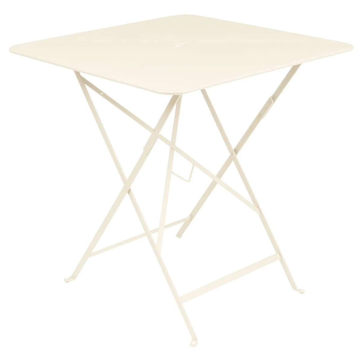 La table de jardin Fermob de 71 x 71 cm dispose d'un petit évidement au milieu du plateau de table qui sert de support pratique pour le parasol. Les parasols avec un support de Ø 41 mm maximum peuvent être encastrés dans le plateau de table.