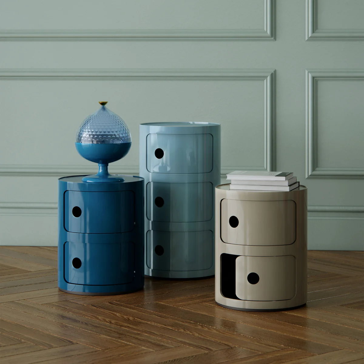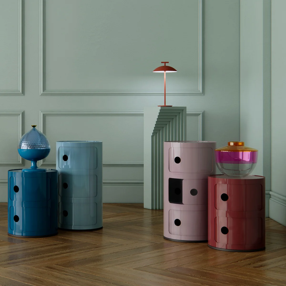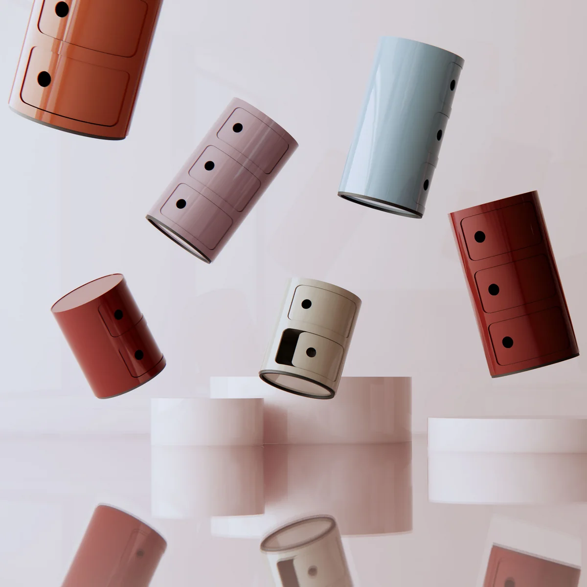 Les éléments modulaires Componibili ont été développés en 1969 par Anna Castelli Ferrieri afin de répondre aux exigences d'utilisation les plus diverses. Les caissons de Kartell peuvent trouver leur place dans toutes les pièces de la maison : dans la salle de bains, la chambre à coucher, la cuisine et le salon, ainsi que dans la chambre des enfants.