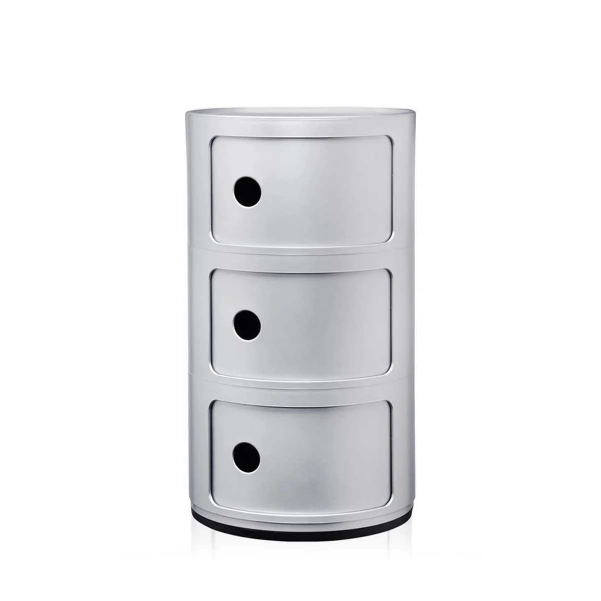 Les Componibili existent en version ronde ou carrée et ils peuvent également être livrés sur roulettes. Flexibles, fonctionnels, pratiques : les Componibili sont un classique du design avec une tradition de trente ans, qui a obtenu beaucoup de reconnaissance pour la concision et l'innovation de son design et qui a depuis longtemps roulé dans l'exposition permanente du Museum of Modern Art de New York et du Centre George Pompidou à Paris.