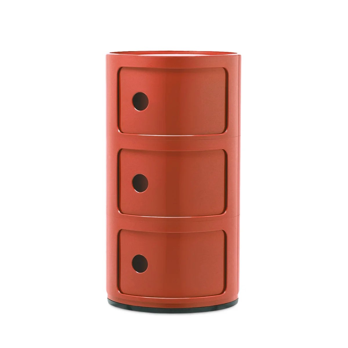 Les Componibili existent en version ronde ou carrée et ils peuvent également être livrés sur roulettes. Flexibles, fonctionnels, pratiques : les Componibili sont un classique du design avec une tradition de trente ans, qui a obtenu beaucoup de reconnaissance pour la concision et l'innovation de son design et qui a depuis longtemps roulé dans l'exposition permanente du Museum of Modern Art de New York et du Centre George Pompidou à Paris.