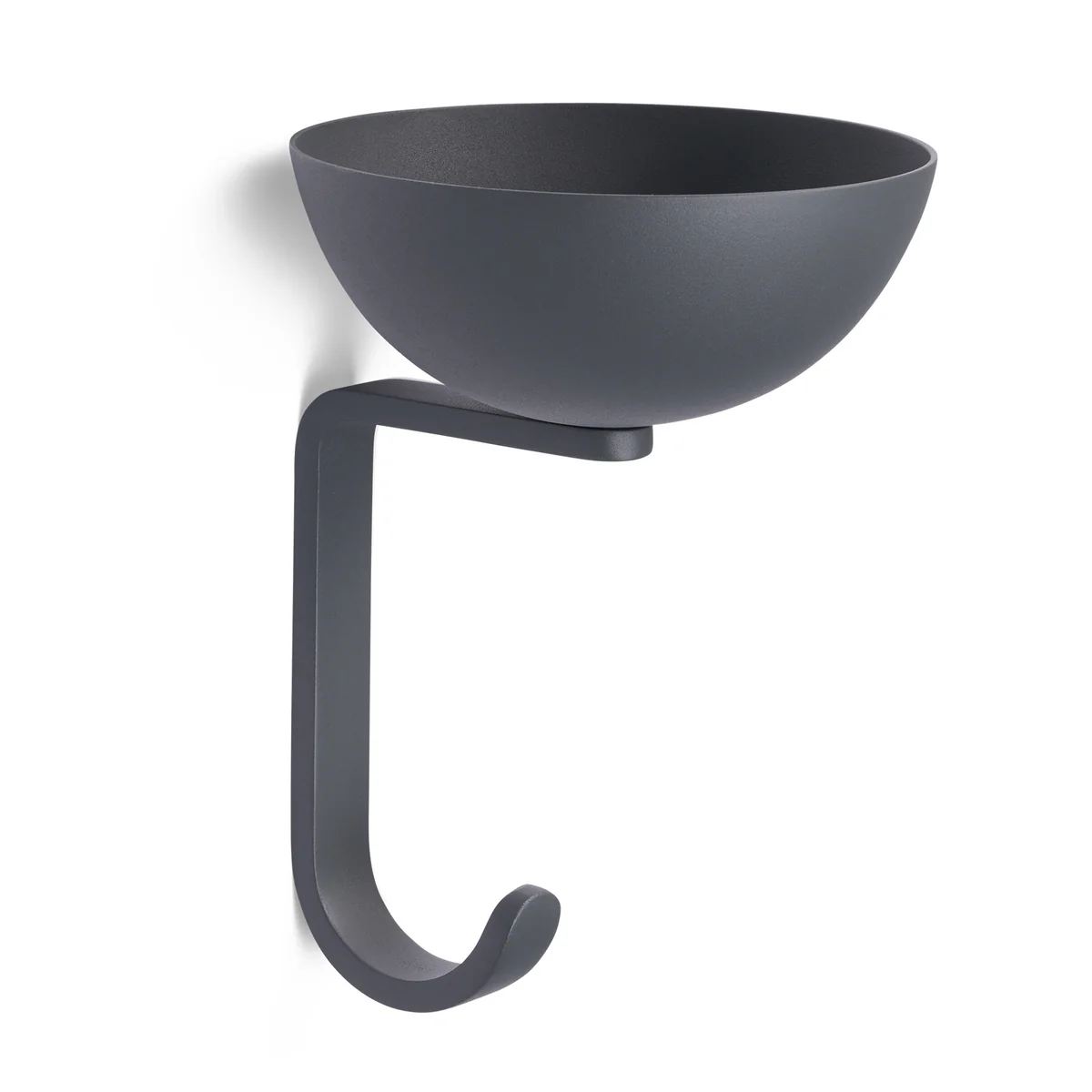 Le crochet mural en acier et aluminium est associé à une coupelle ronde - semblable à un oiseau - qui permet de suspendre des objets. nest - qui permet de ranger toutes sortes d'objets en toute sécurité.