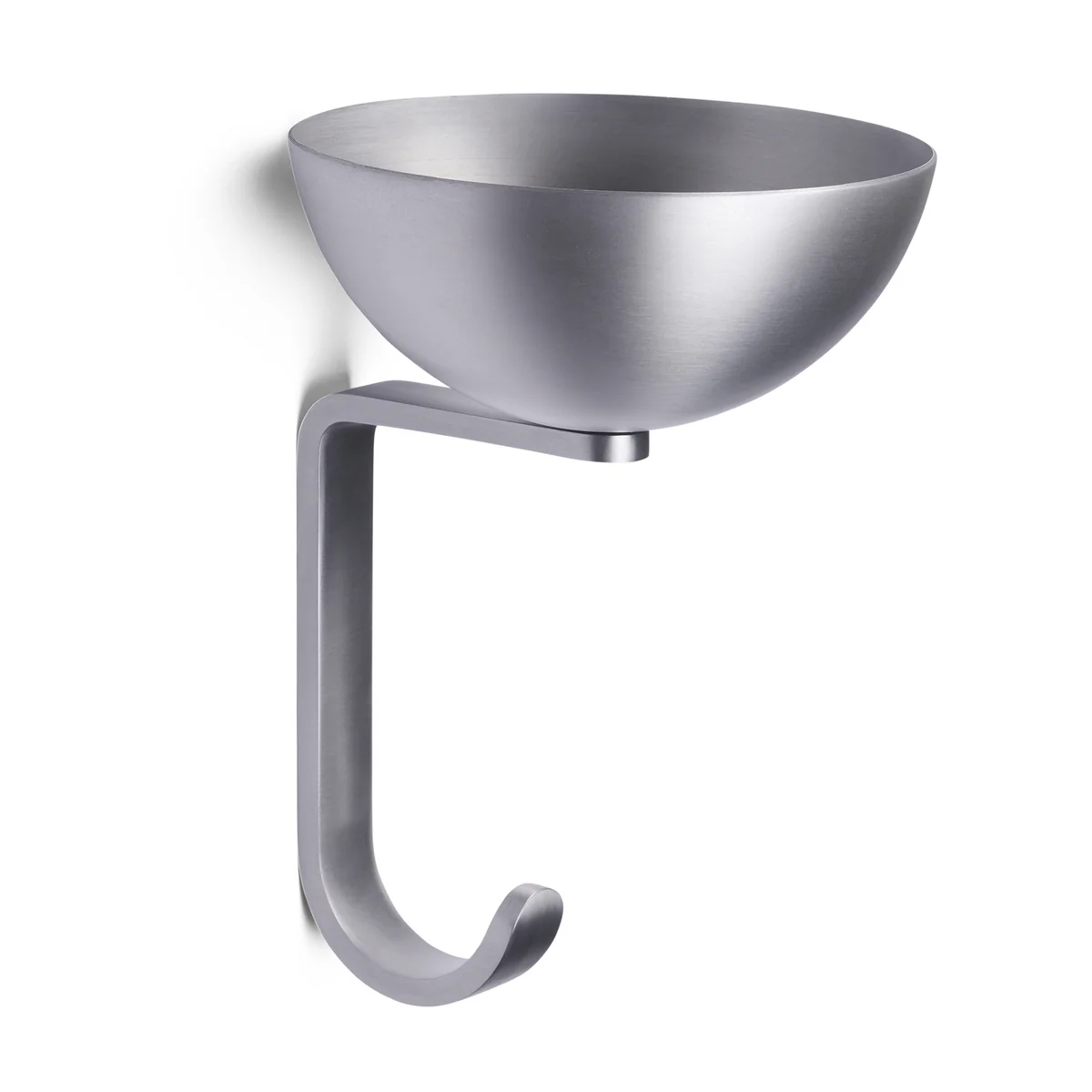 Le crochet mural en acier et aluminium est associé à une coupelle ronde - semblable à un oiseau - qui permet de suspendre des objets. nest - qui permet de ranger toutes sortes d'objets en toute sécurité.