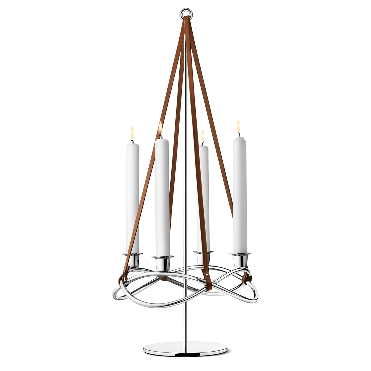 Grâce à l'extension de bougeoir Season, le chandelier de Georg Jensen apparaît sous un tout autre jour. Ce dernier est accroché aux lanières de cuir, elles-mêmes fixées à la grande barre. Le bougeoir Season devient aussitôt festif, luxuriant, ne se démarquant pas seulement à l'occasion de Noël.