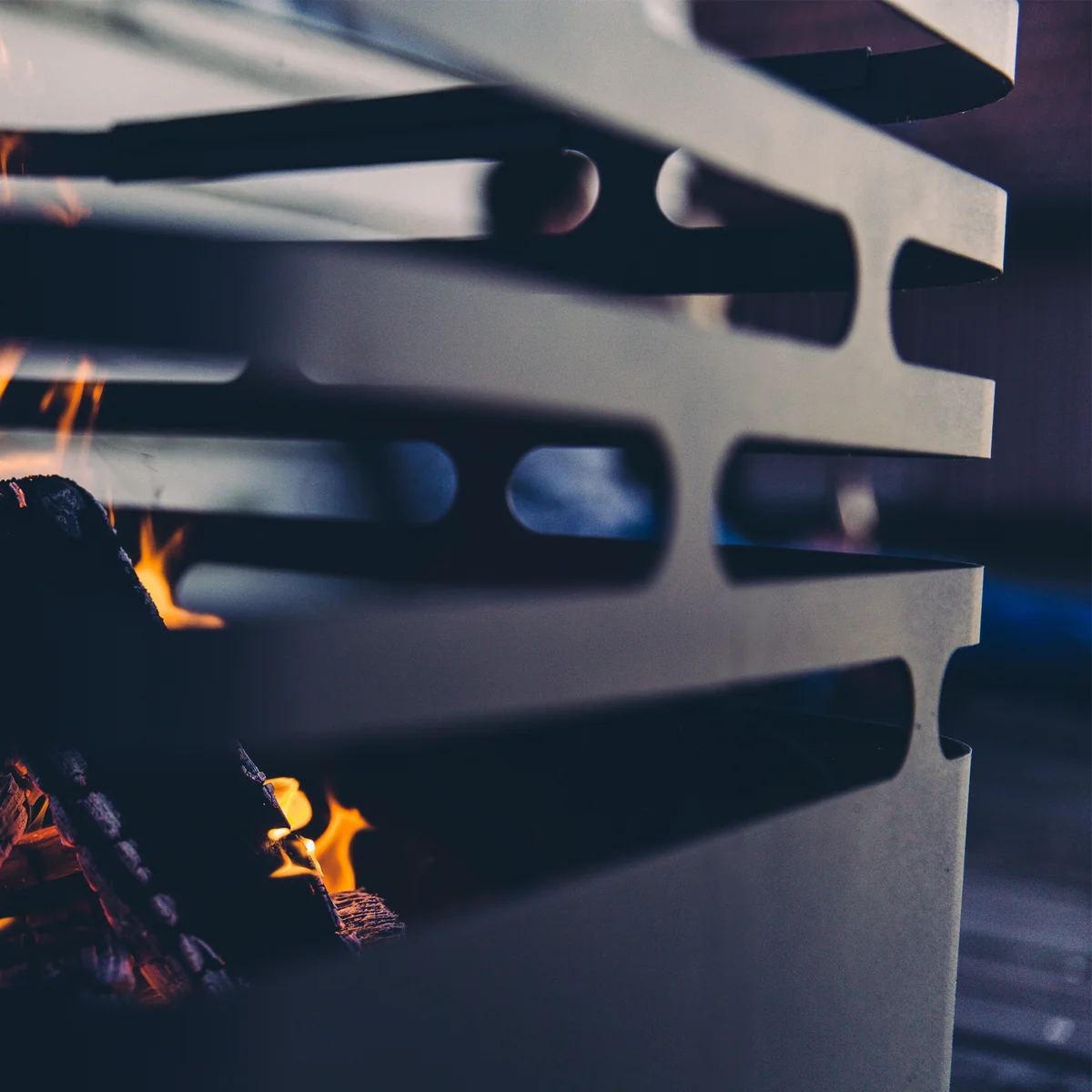Le site Cube de höfats est bien plus qu'un simple brasero. C'est probablement le brasero le plus sûr du monde qui s'éteint sur commande. La grille en acier inoxydable de 6 mm d'épaisseur permet de transformer le brasero en gril. Bien entendu, il est réglable en hauteur.