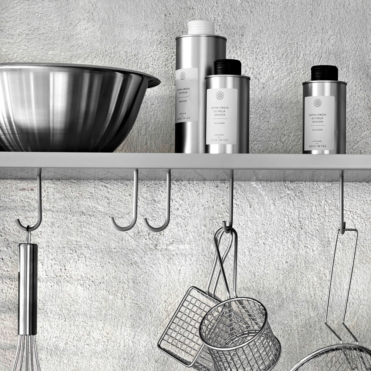 Les crochets de String complètent les étagères métalliques pratiques de String et permettent d'utiliser également le dessous d'un plancher. Qu'il fasse partie d'un portemanteau mural, d'une étagère dans la cuisine ou dans la salle de bain, le crochet est pratique et stable. On peut ainsi y suspendre aussi bien des vestes que des jouets, des torchons, des casseroles et autres ustensiles.