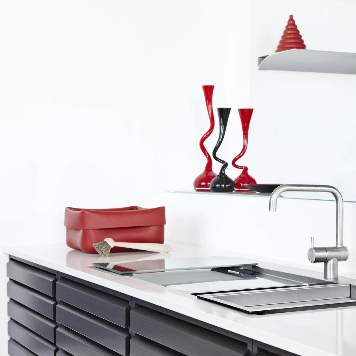 Le caractère malaxé à la main de l'évier a été conservé. Grâce au matériau innovant qu'est le caoutchouc, la forme est élastique, adaptable et extensible, mais en même temps résistante, stable et durable.