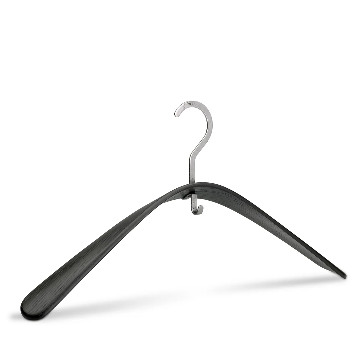Le Pilot Le cintre de la designer Nina Tolstrup est disponible en teck et en chêne. En raison notamment de son matériau, le Pilot Le cintre est un complément idéal à la série de garde-robes Cutter de Skagerak.
