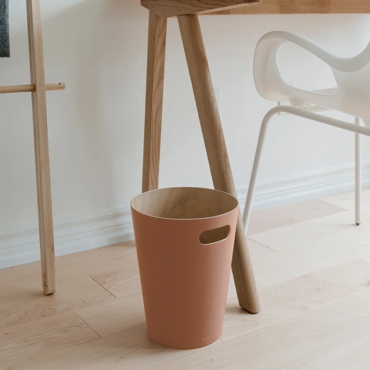 L'élégante corbeille à papier Woodrow par Umbra est plus qu'une simple poubelle. Fabriqué en bois teinté et orné d'une couche de vernis en différentes couleurs, le contenant minimaliste d'Umbra apporte un vent de fraîcheur dans tous les bureaux et se révèle être, outre ses propriétés pratiques, un accessoire discret sur le lieu de travail. Une poignée sur le côté permet de vider facilement et confortablement la corbeille à papier. L'ébauche est signée du designer taïwanais Henry Huang.