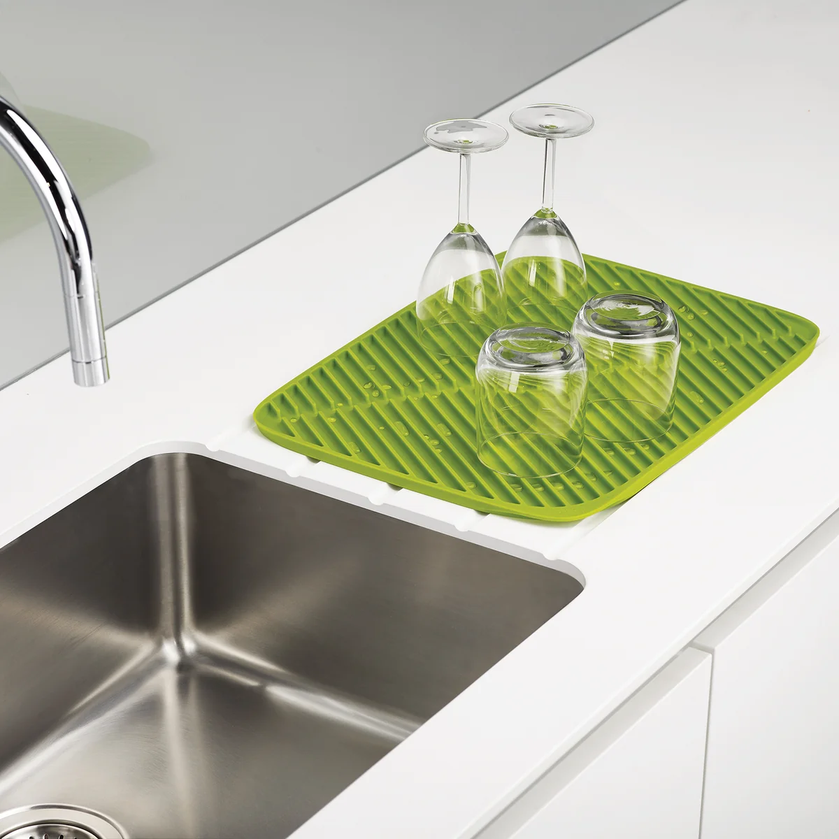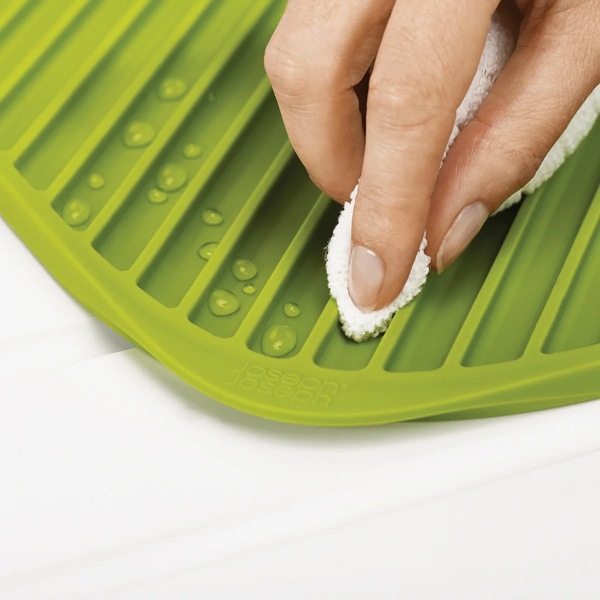 En un seul geste, le tapis-égouttoir de Joseph Joseph vous permet d'agrandir la surface utilisable de votre évier. Grâce à sa surface à rainures, la vaisselle sèche relativement vite et sans traces d'humidité. La structure de la surface du tapis-égouttoir accélère le séchage et les traces d'humidité appartiennent désormais au passé.