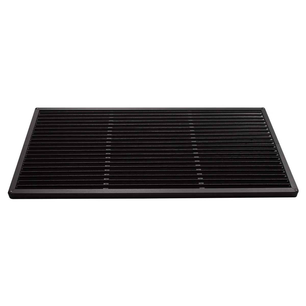 Le tapis antidérapant se compose d'un cadre en aluminium revêtu par poudre, d'un cadre intérieur en PVC extrudé et d'une bande d'acier inoxydable 304. Grâce à ses matériaux, le paillasson Rizz peut être placé aussi bien à l'intérieur qu'à l'extérieur.