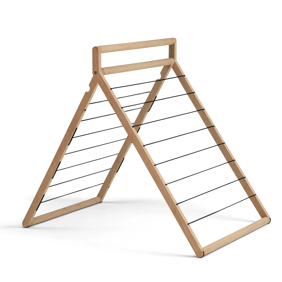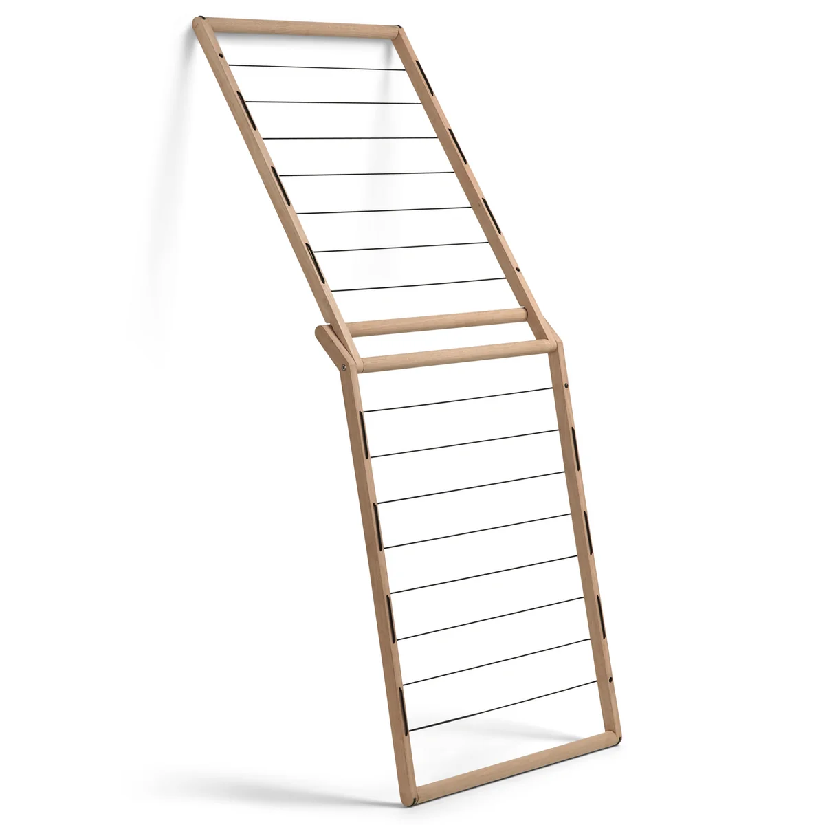 Le séchoir à linge de Skagerak peut être appuyé contre le mur ou posé librement en pyramide. Les pieds antidérapants garantissent une bonne stabilité, même avec des vêtements lourds et mouillés, tout en préservant le sol.