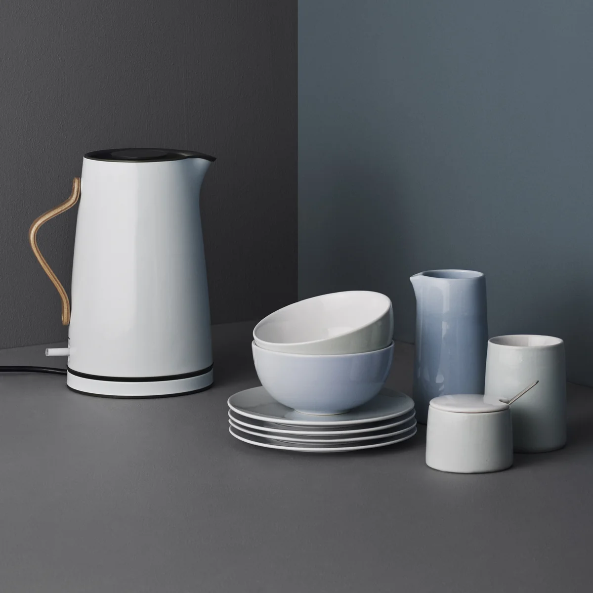 La bouilloire prolonge la série de thés et cafés Emma de Stelton, plusieurs fois primée. La bouilloire sans fil en acier inoxydable est équipée d'un arrêt automatique au point d'ébullition et a une position à 360° dans le pied. Il a une capacité de 1,2 litre et dispose d'un filtre à chaux, d'une double paroi isolée et d'un dispositif de sécurité contre le fonctionnement à sec.