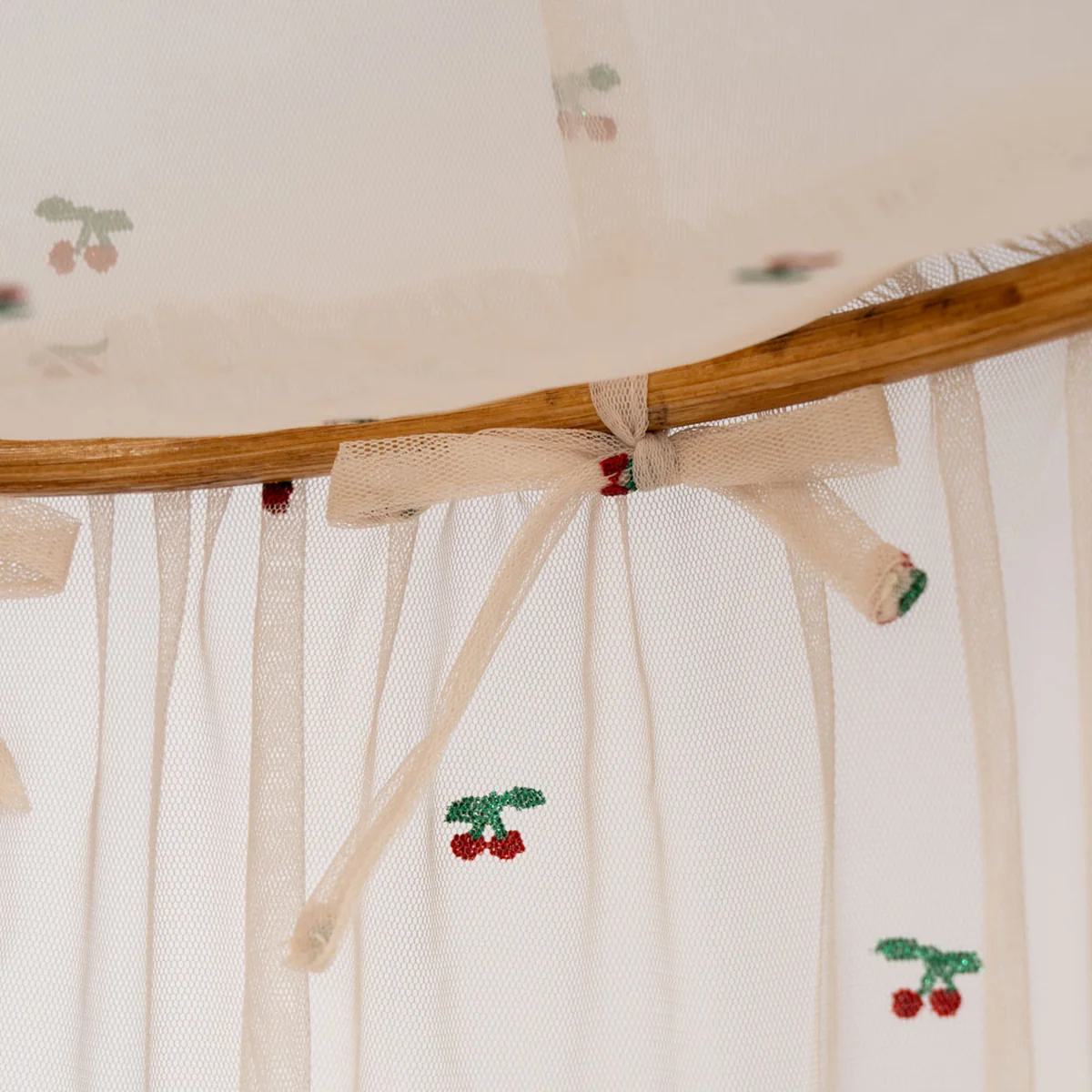 Le ciel de lit confère à l'endroit où l'on dort une atmosphère apaisante et rêveuse. Avec un soupçon de paillettes de cerise, la chambre d'enfant se transforme en une oasis magique de bien-être - parfait pour faire de beaux rêves.