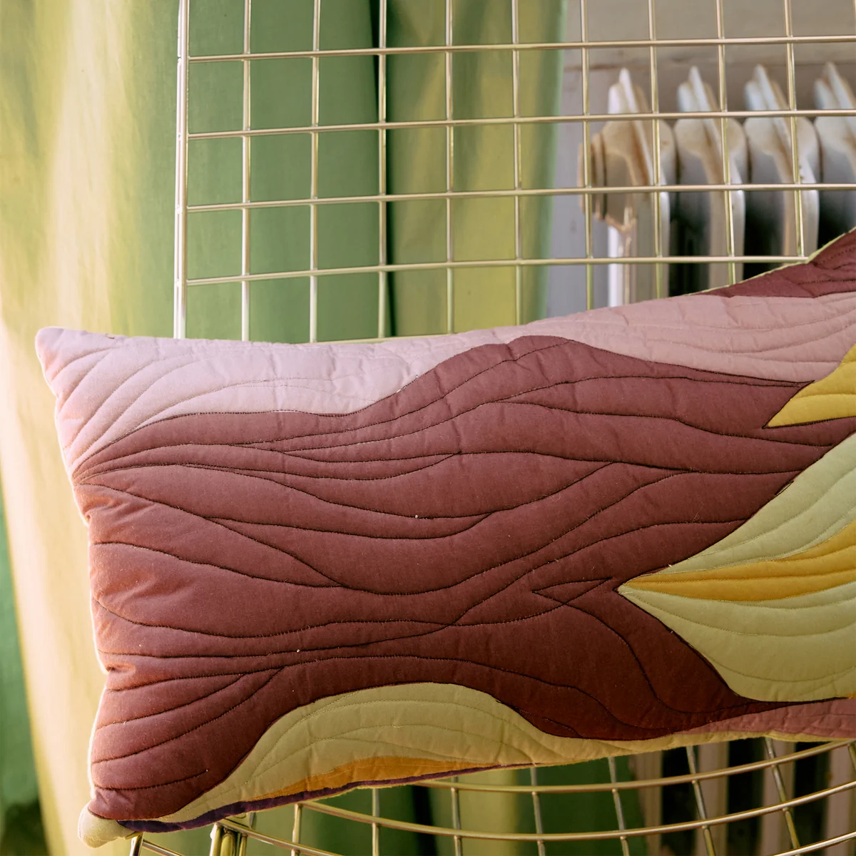 - Coussin en velours avec un motif de broderie fluide et de doux dégradés de couleurs