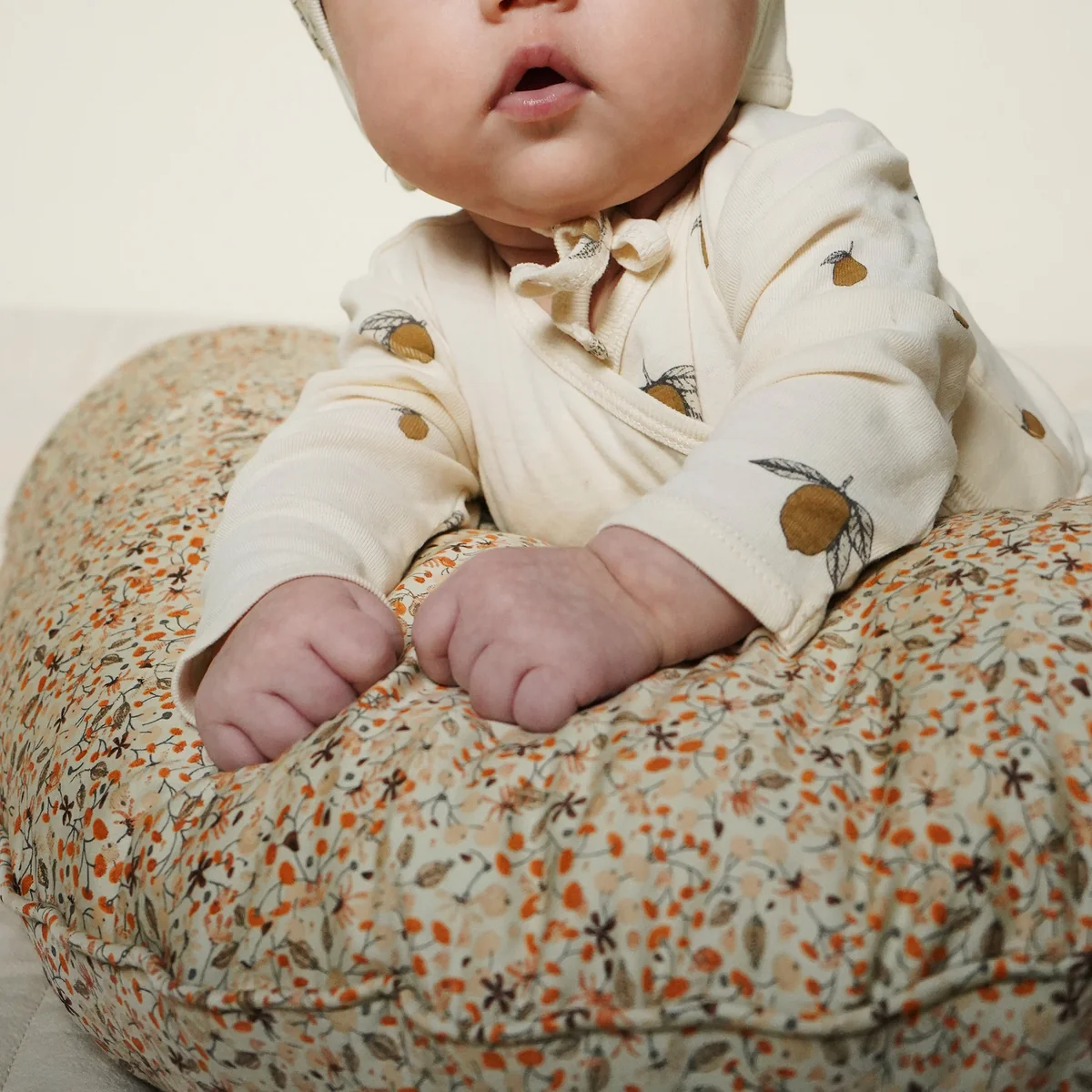 Le coussin d'allaitement est rempli de fibres de kapok, un matériau naturel qui est respirant, hypoallergénique et écologique. Ce rembourrage assure une répartition uniforme du poids et s'adapte parfaitement au corps pour permettre une position confortable pendant l'allaitement.