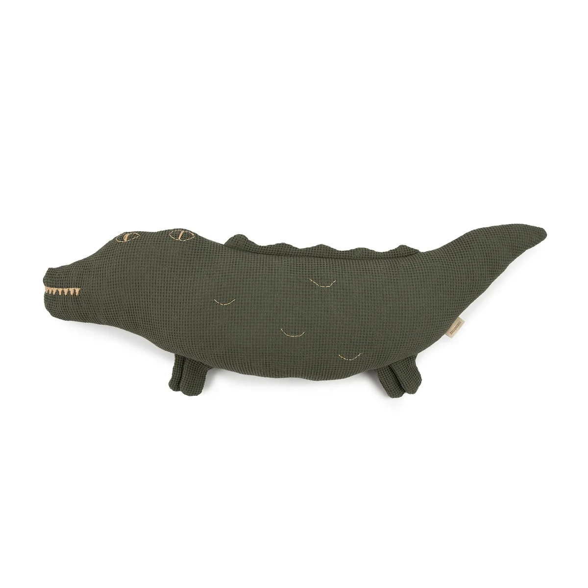 Nobodinoz - Wabi Sabi Coussin, Crocodile, 72 x 22 cm, vétiver