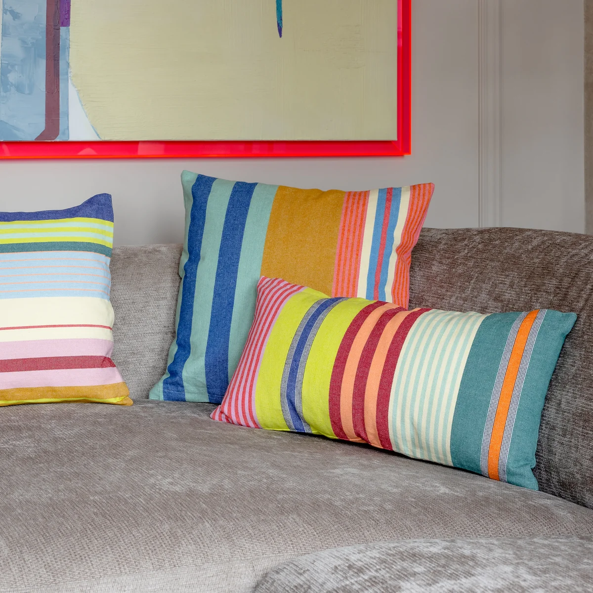 Avec son motif à rayures multicolores, le coussin en coton de Remember confère une touche chaleureuse à chaque intérieur. Chaque coussin de Remember attire l'attention et défie toute humeur maussade et tout mauvais temps grâce à sa housse colorée.