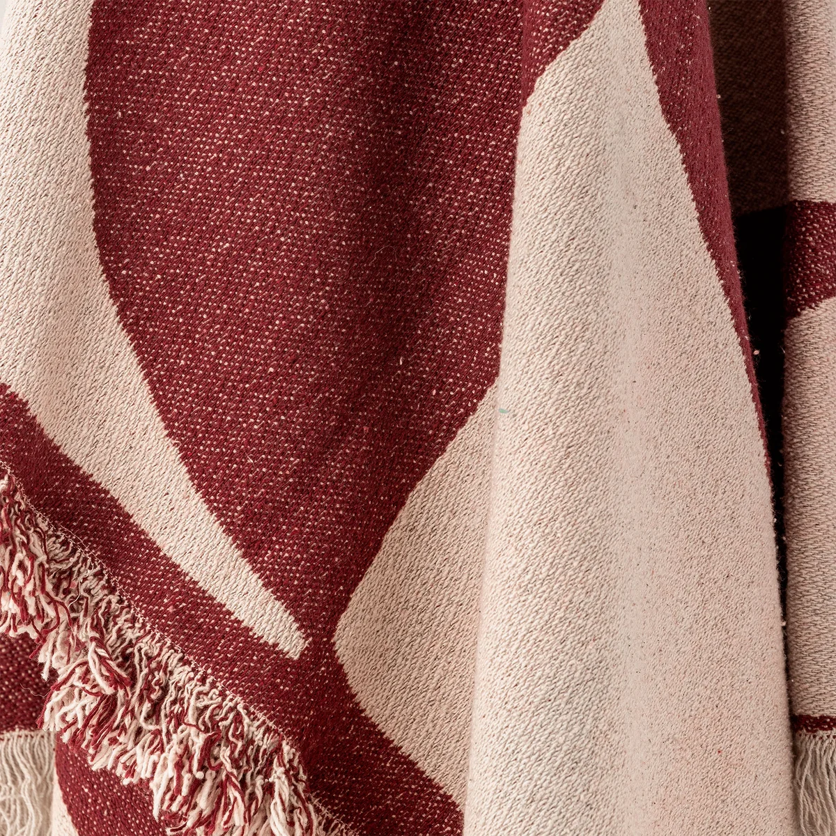 Le plaid Olica allie élégance et confort dans un jeu de couleurs harmonieux de bordeaux profond et de doux tons pastel. Grâce à la technique de double tissage, une combinaison de couleurs contrastées est créée sur l'envers, ce qui offre de multiples possibilités de décoration. Des franges décoratives sur les quatre côtés confèrent au plafond une note confortable, parfaite pour créer une atmosphère chaleureuse et accueillante dans le salon ou la chambre à coucher.