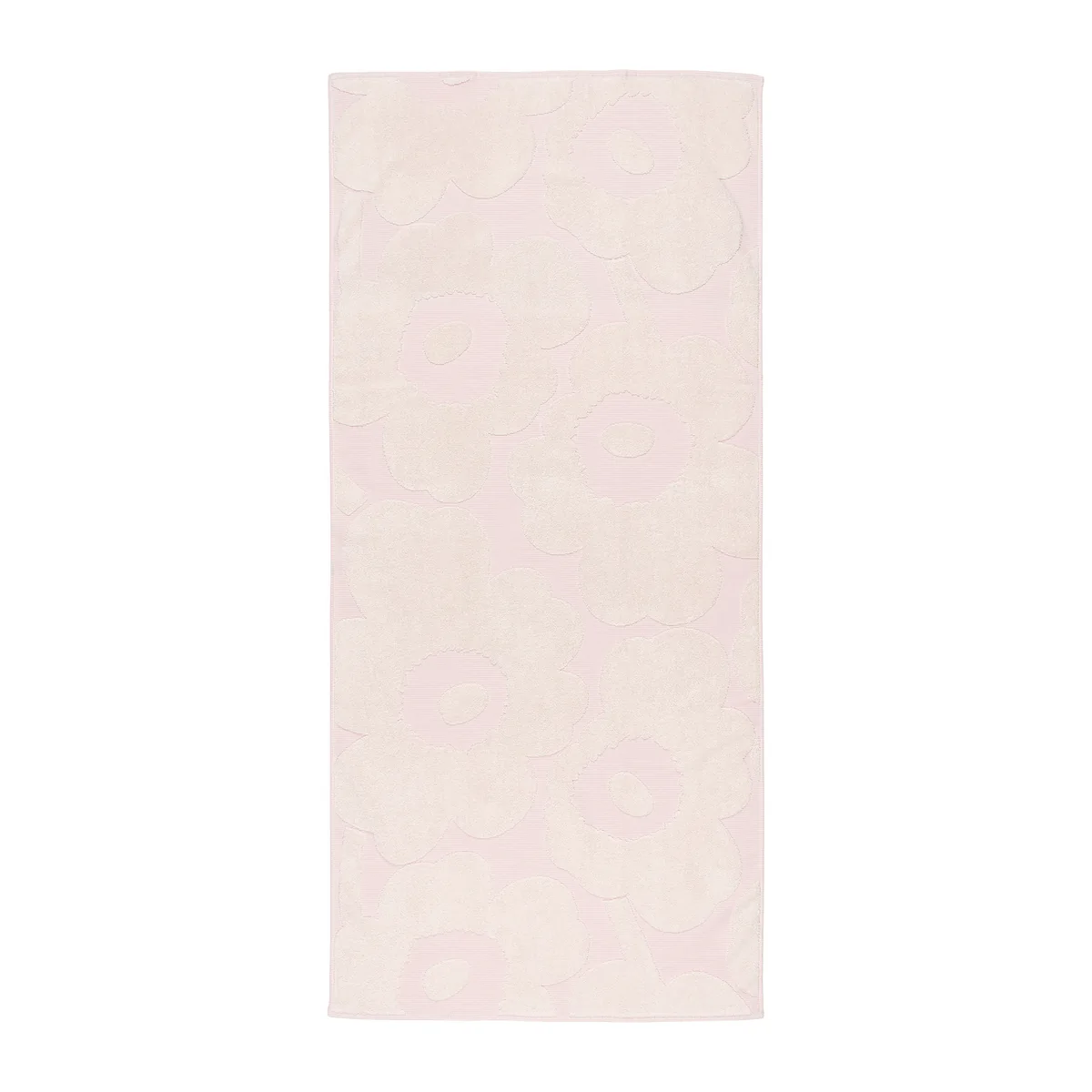 Le motif Unikko de Maija Isola est l'un des designs les plus connus de Marimekko . Dans différentes couleurs, l'imprimé floral orne désormais aussi les serviettes de bain de différentes tailles.