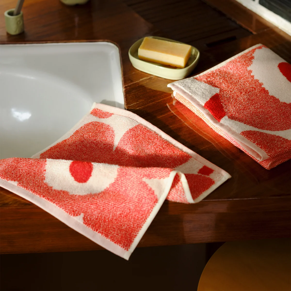 Dans la qualité habituelle de Marimekko , les mini-serviettes Unikko Solid séduisent par la douceur de leur fibre de coton qui absorbe particulièrement bien l'humidité.
