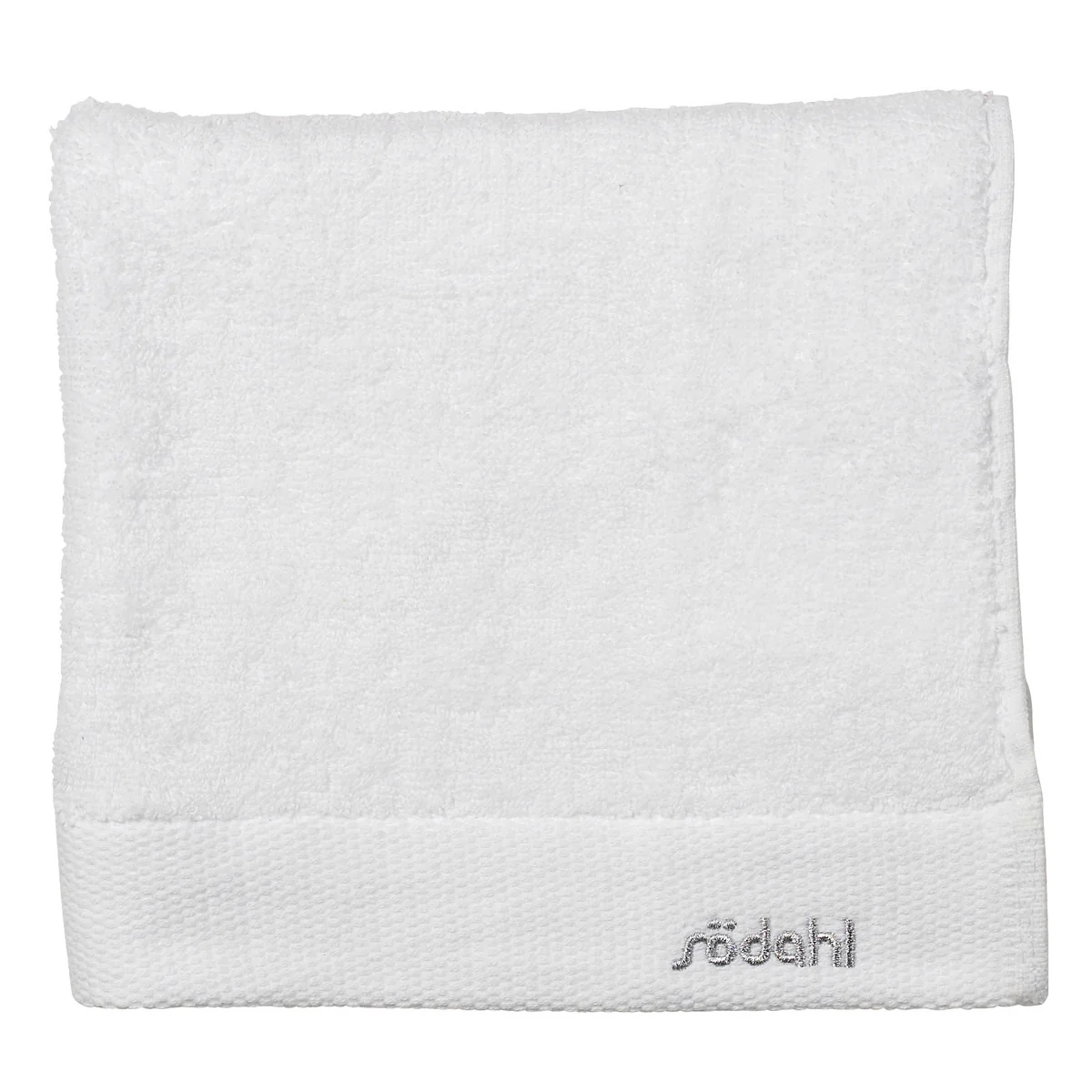 La serviette en coton doux est bordée et ornée de l'élégant logo Södahl , qui se retrouve sous forme d'écriture sur la serviette.