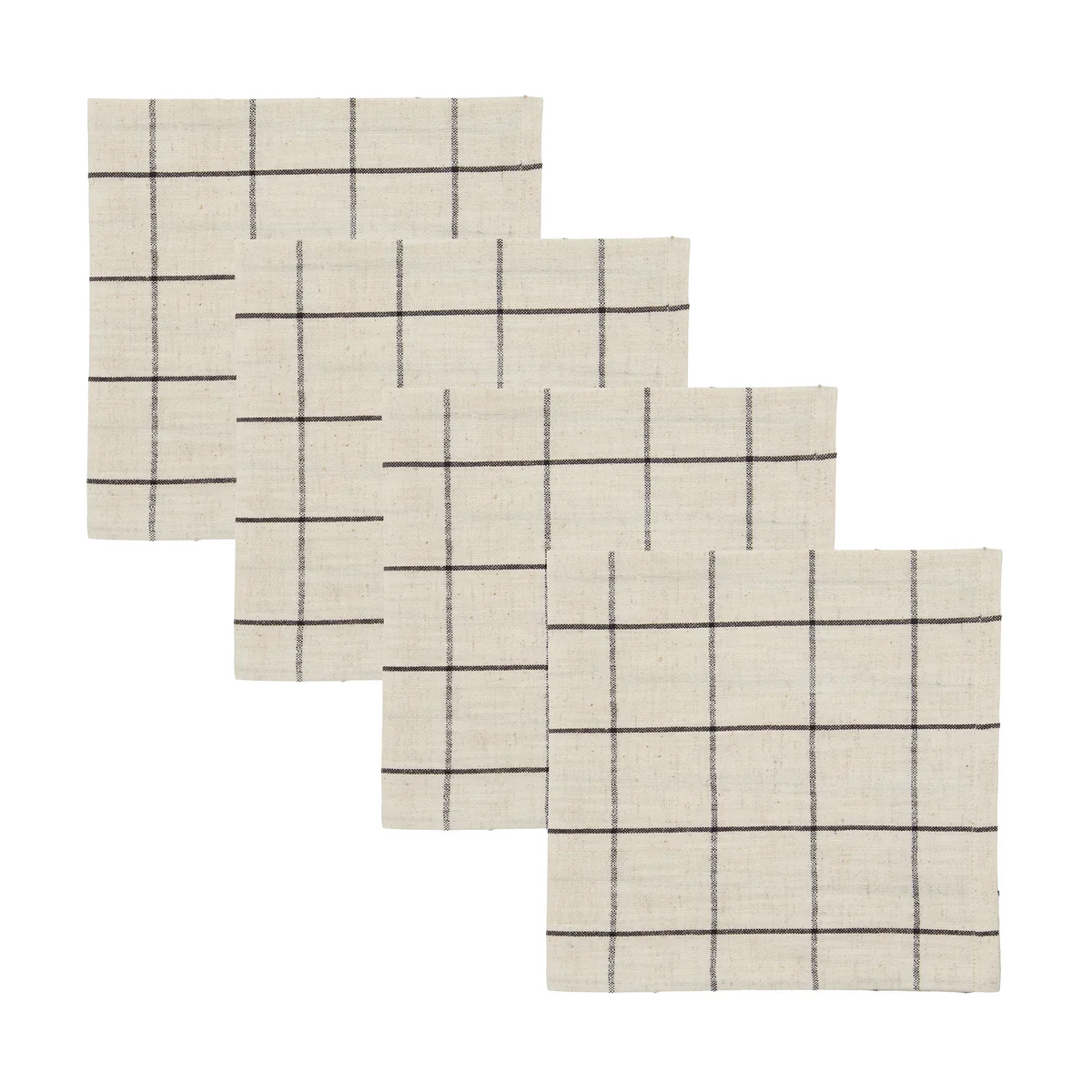 Ce set de quatre serviettes super douces apporte un look moderne et frais à la table de la salle à manger. Le motif à carreaux discret en noir sur un ton blanc cassé est idéal pour les décorations de table estivales et se combine parfaitement avec des nappes unies ou à motifs, comme par exemple d'autres produits de la série Join.