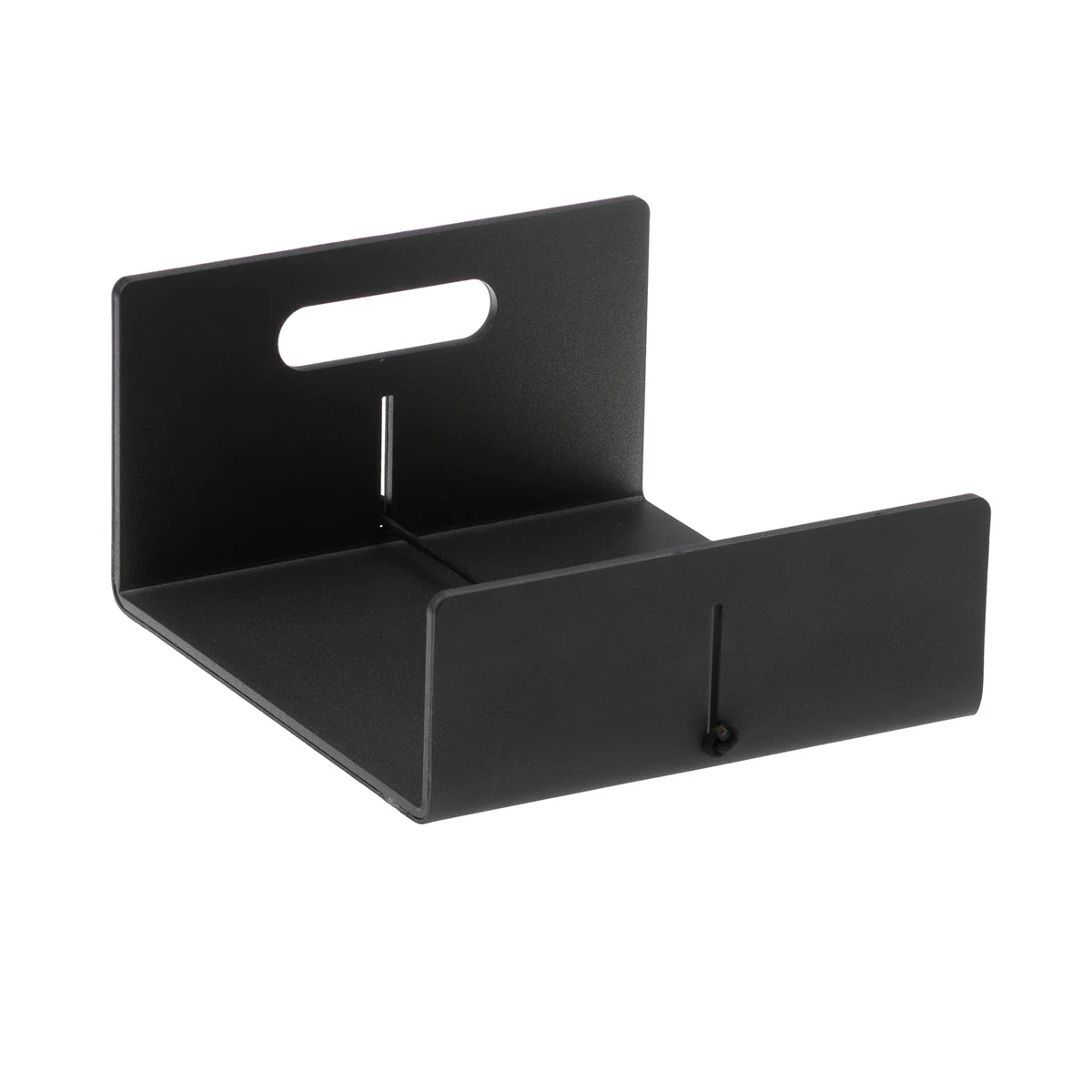 Le porte-serviettes de Lind DNA est une boîte fabriquée à la main en aluminium et recouverte de cuir recyclé. La lanière appuie sur les serviettes et les maintient bien en place et ne les laisse pas s'envoler grâce à une bande de cuir pouvant être réglée en hauteur. Une poignée sur le côté le plus élevé de la boîte permet de la transporter simplement et sans effort, de sorte que le porte-serviettes peut être apporté sur la table puis ramené à la cuisine facilement.