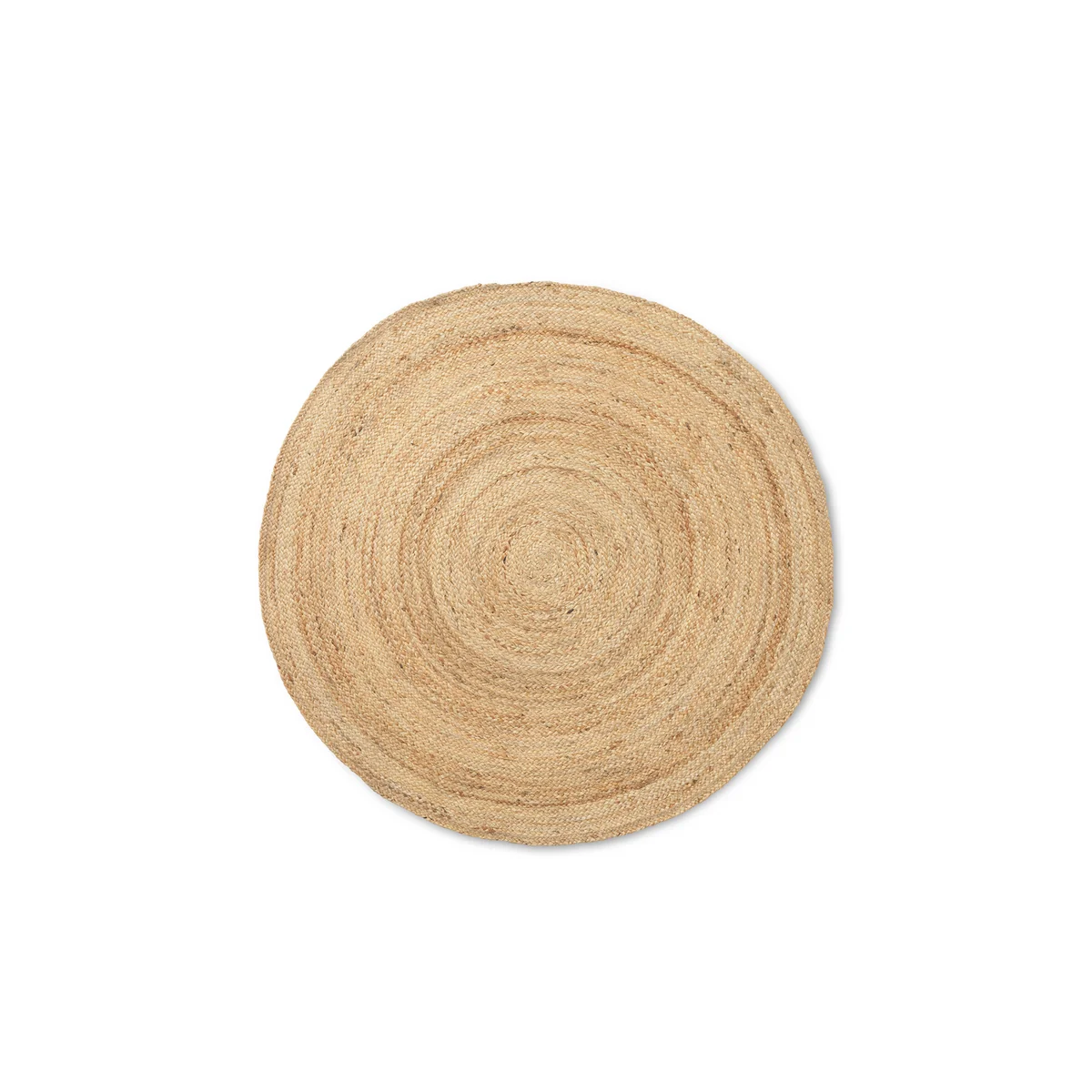 Le Eternal Le tapis rond de jute de Ferm Living est disponible en deux tailles et deux couleurs et est fait de jute 100% tissé à la main.