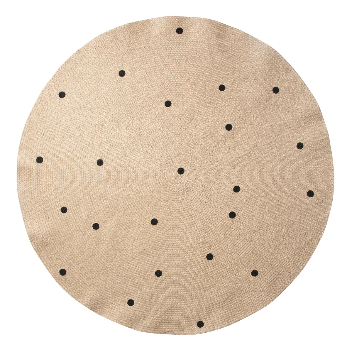 Le tapis Black Dots Jute Carpet de Ferm Living est un tapis discret et intemporel orné de petits points noirs. Il peut être utilisé comme tapis de jeu au centre de la chambre d'enfants ou comme accroche-regard sous un fauteuil.