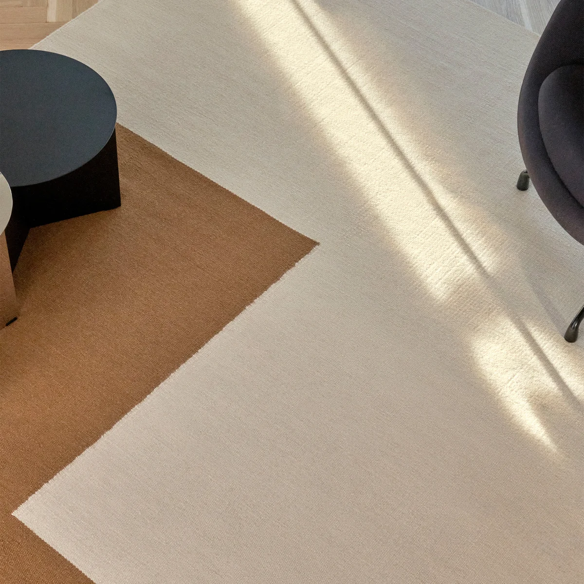 Inspiré par l'art mural décoratif tissé, Ethan Cook's Flat Works est une série de tapis kilim tissés à la main, spécialement conçus pour HAY ont été créés pour l'occasion. Avec un design abstrait géométrique, les tapis traduisent les œuvres d'art audacieuses et colorées du designer en objets pratiques et décoratifs.