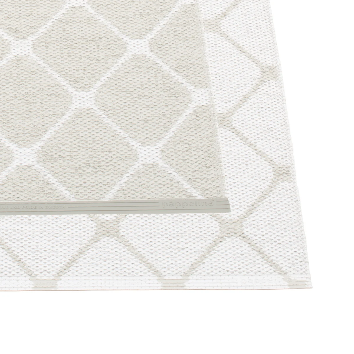 Le design et l'idée de ce tapis résistant proviennent de Lina Rickardsson, qui a fondé l'entreprise Pappelina en 1999 et a depuis fait fabriquer ses produits dans une petite usine de tissage à Dalarma, en Suède. Grâce au matériau et à l'extrémité soudée avec le logo Pappelina en relief sur les bords, le tapis a une longue durée de vie.