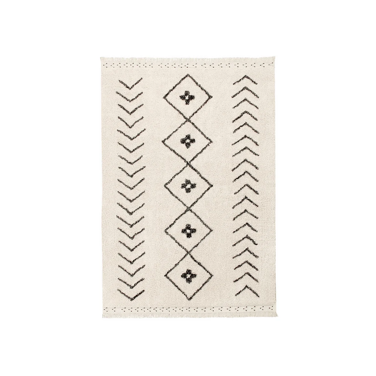 Le tapis Bereber Rhombs tapis de la maison Lorena Canals se distingue par sa qualité artisanale. Le tapis est fabriqué à partir d'une base de coton et de fibres textiles recyclées. Bereber Rhombs offre un merveilleux flair vintage avec ses broderies sur les franges et son tuftage mélangé.