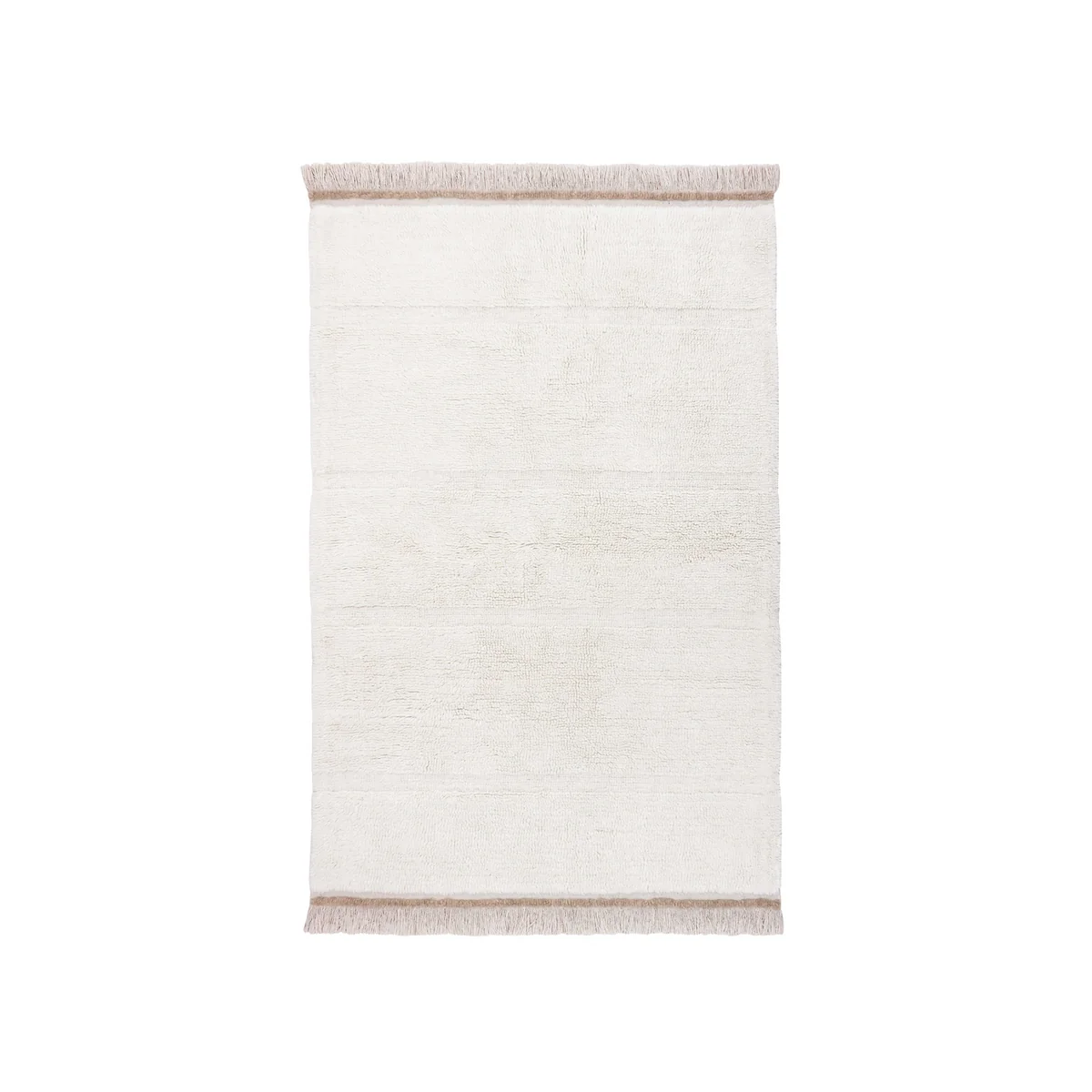 Découvrez les nuances naturelles et la douceur luxueuse de la laine moelleuse. Le design simple avec des hauteurs de poils et des franges variables confère à votre pièce un confort et un style élégants. Durable et fabriqué à la main avec de la laine certifiée RWS, ce tapis s'adapte à tous les intérieurs. Le tapis lavable est livré dans un sac en coton pratique, qui sert également de rangement, et contient une sous-couche antidérapante pour une tenue sûre.