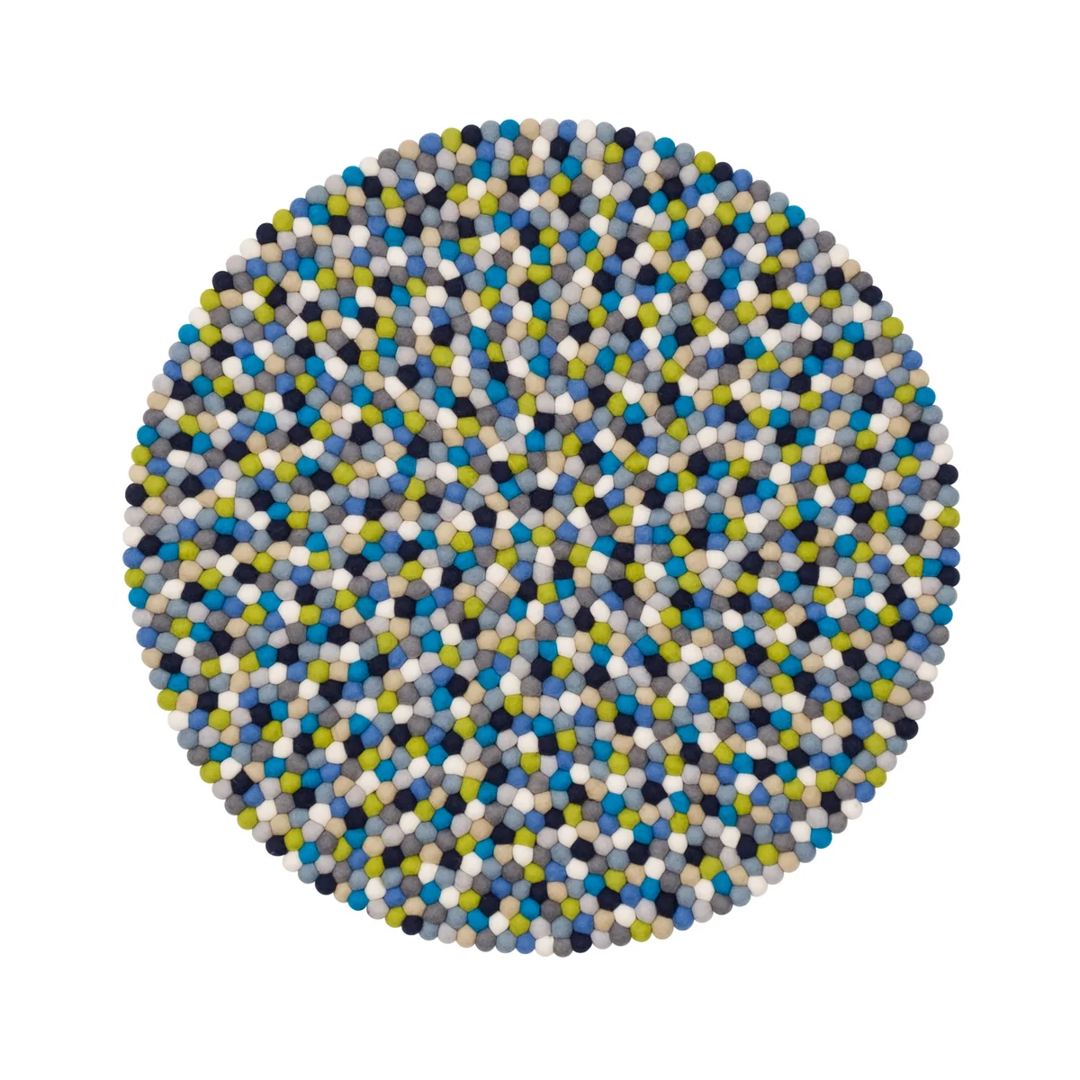 Disponible en différentes couleurs, le tapis rond à boules de feutre est disponible en version ronde, rectangulaire et carrée.