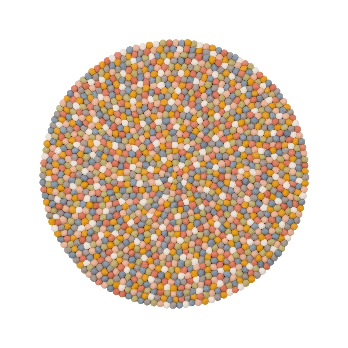 Le tapis rond en feutre de myfelt est multicolore et attire immédiatement le regard. Ses boules de feutre colorées attirent tous les regards et apportent de la joie dans chaque pièce. Que ce soit dans le salon ou dans la chambre d'enfant.