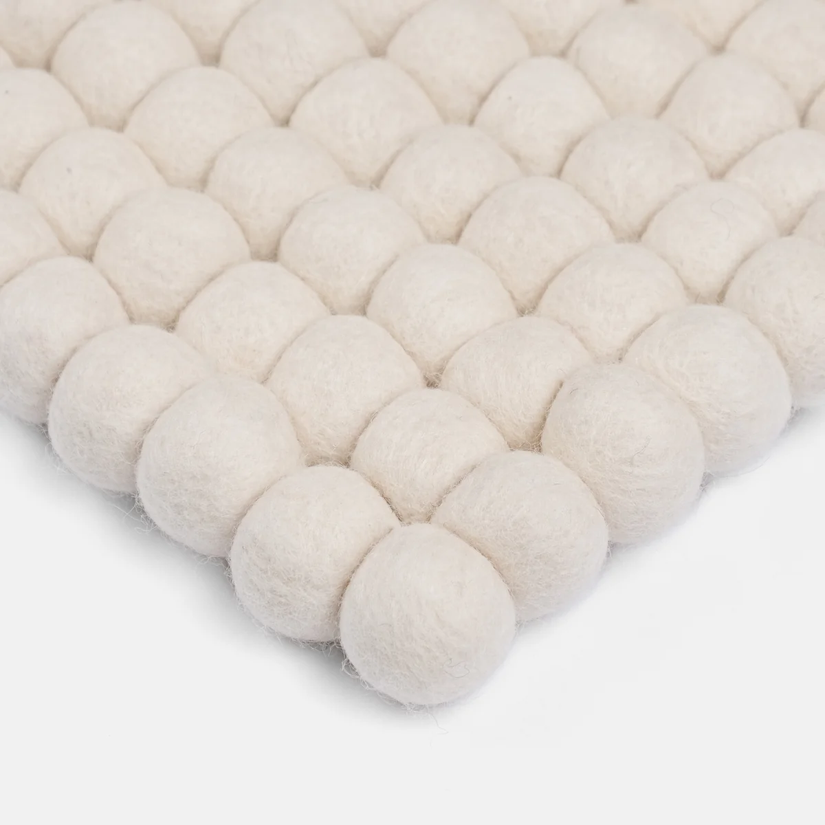 Le tapis rectangulaire de myfelt est un tapis en feutre 100% laine vierge de Nouvelle-Zélande. Les boules de feutre unies confèrent au tapis un aspect pur et léger et ennoblissent chaque pièce de manière discrète.