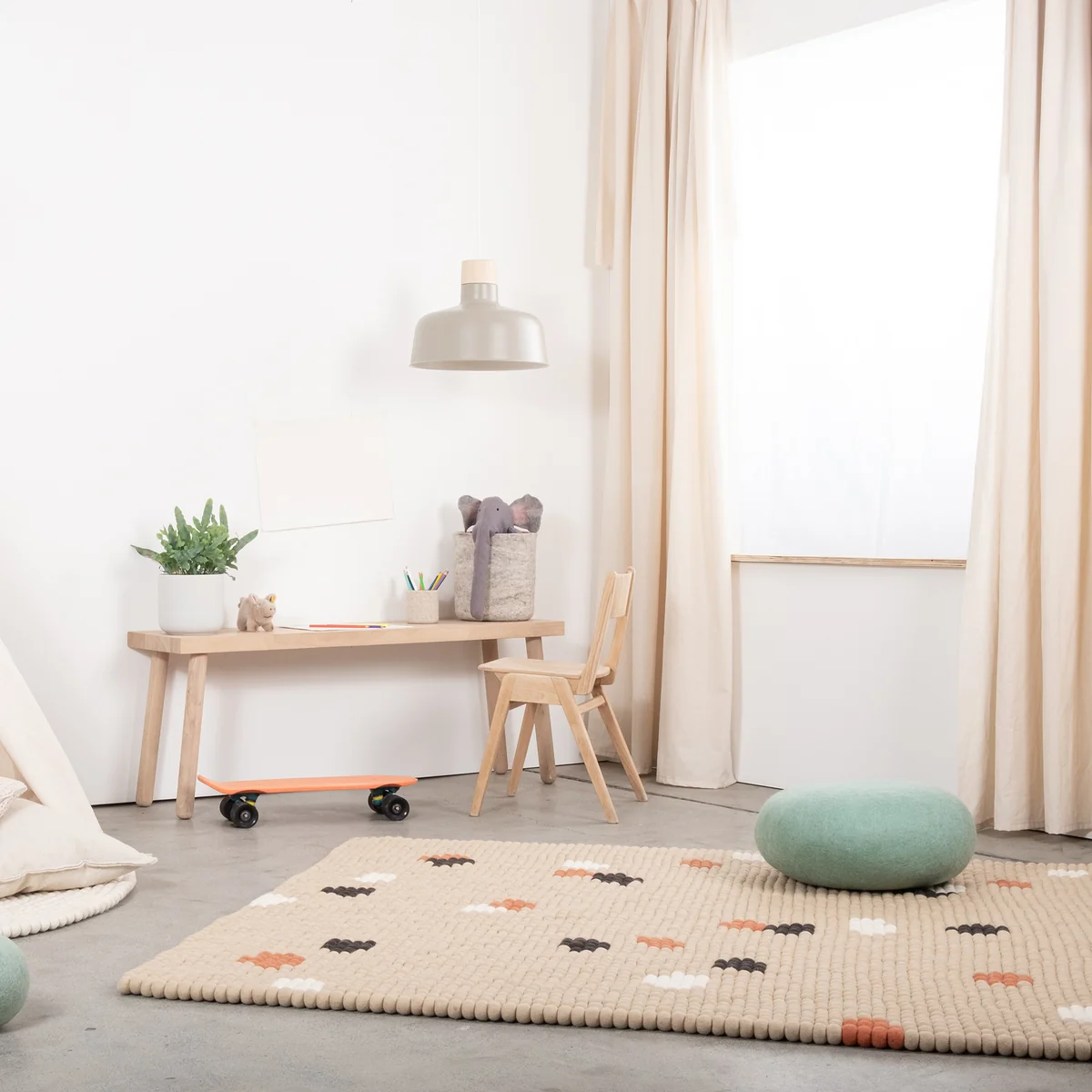 Le design du myfelt Terra Le tapis de boules de feutre rectangulaire allie une esthétique moderne à des éléments naturels. Les tons harmonieusement assortis rappellent la beauté de la nature et créent une atmosphère chaleureuse et accueillante. Que vous préfériez un intérieur minimaliste ou un style campagnard confortable, ce tapis s'intégrera parfaitement dans votre intérieur.
