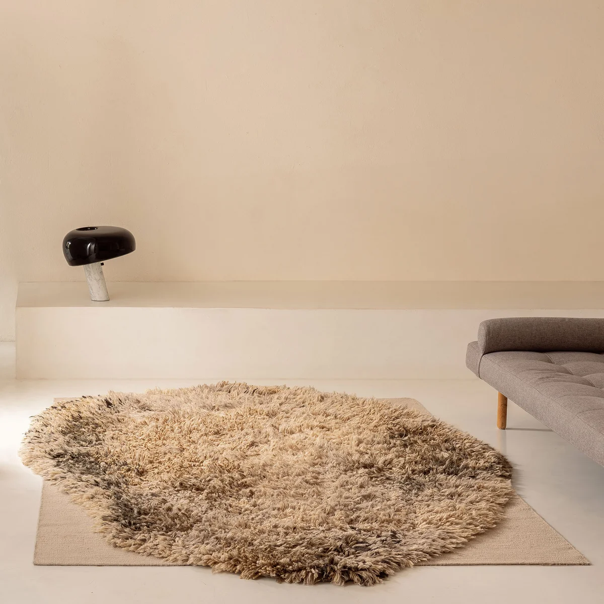La collection Alga de nanimarquina est un hommage sensuel au monde sous-marin - inspiré par les mouvements et les formes douces des plantes marines. La particularité d'Alga réside dans la combinaison d'un contour organique irrégulier et de fibres longues et souples qui sont tressées dans un dhurrie tissé à la main et ensuite nouées à la main. Il en résulte un tapis qui donne l'impression d'être en mouvement, non seulement visuellement mais aussi au toucher. Le design est dynamique et expressif - une véritable déclaration pour les espaces modernes avec une impression de naturel.