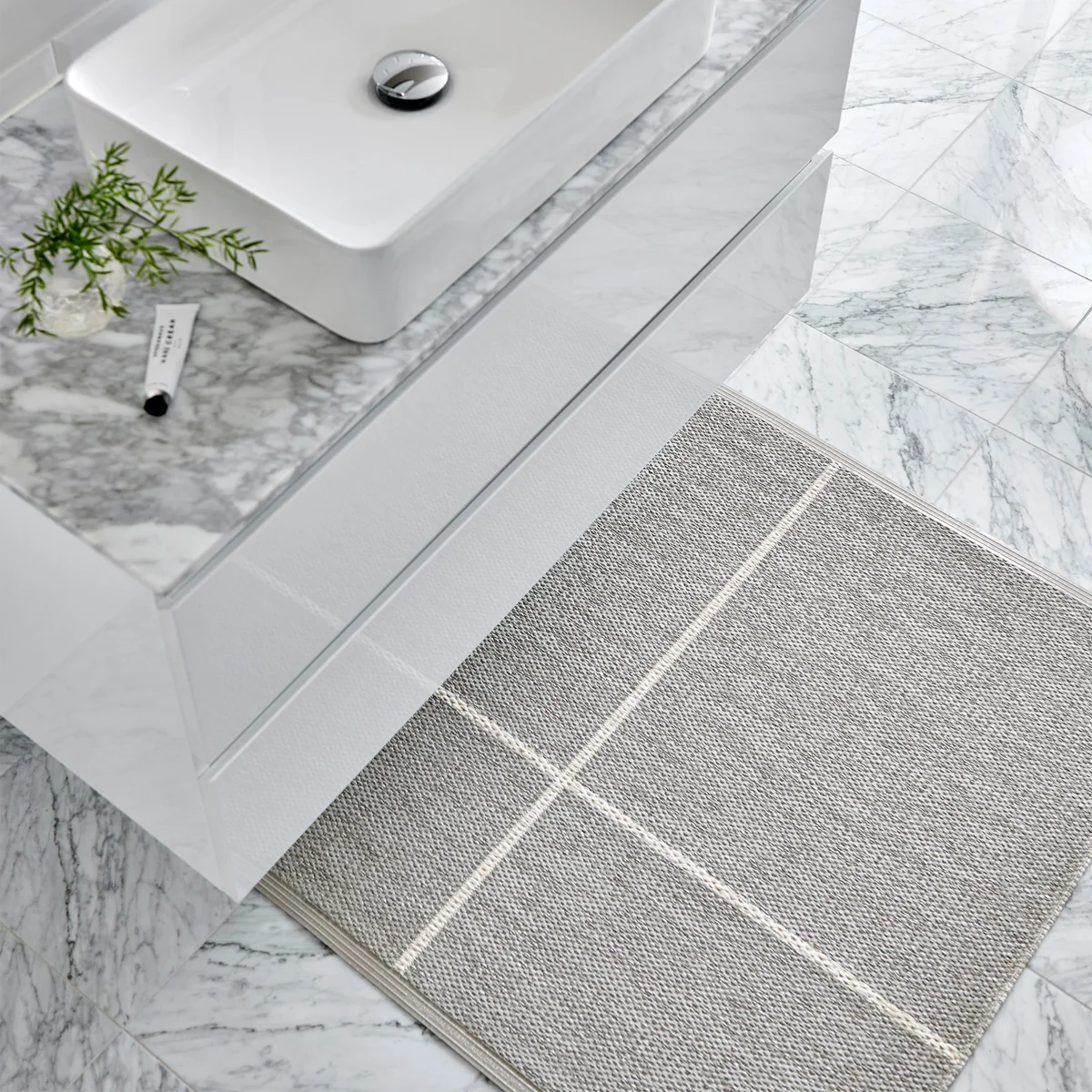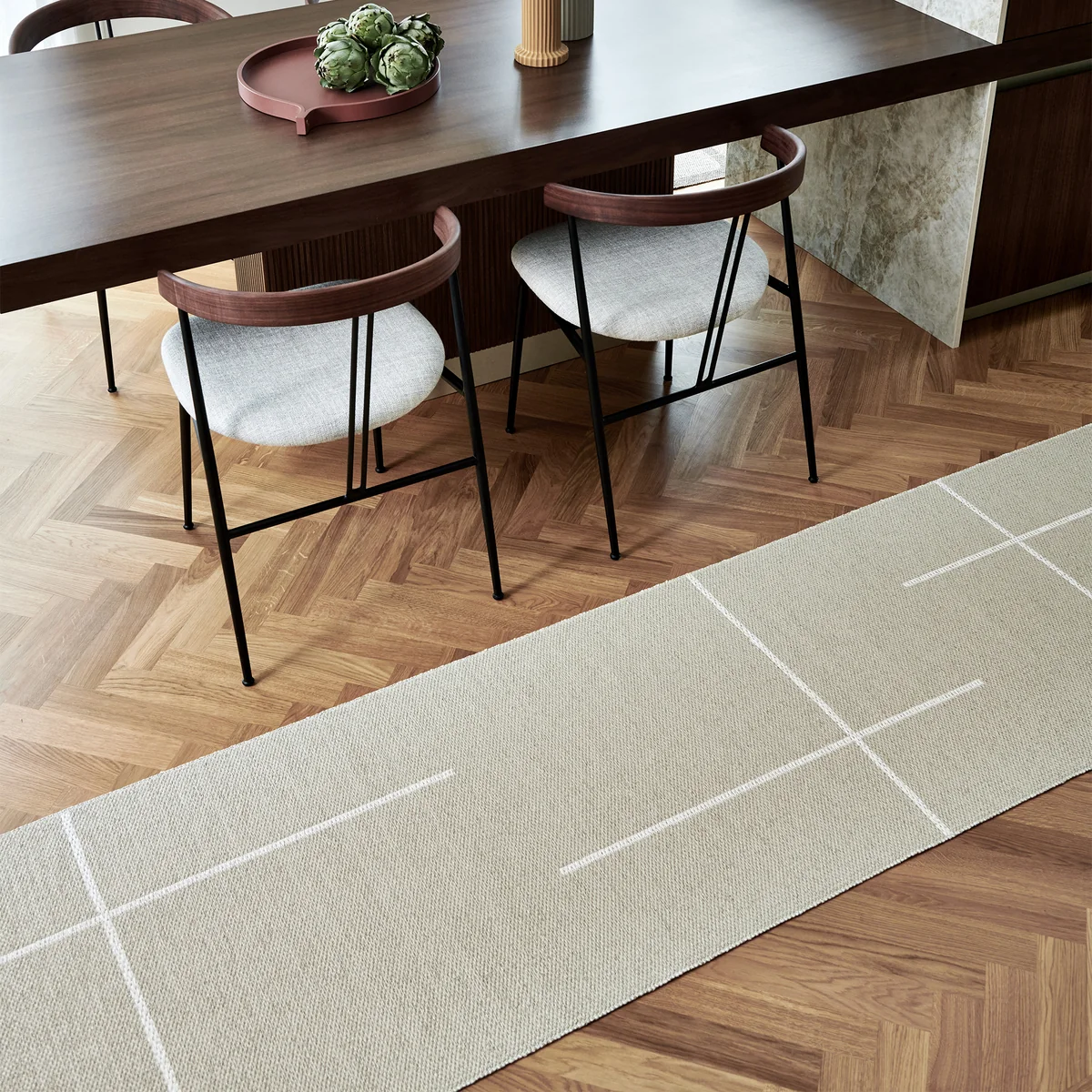 Le Fred tapis réversible du fabricant suédois Pappelina symbolise l'aspiration à la paix personnelle et à celle du monde entier. C'est ainsi que le nom Fred (en français : paix). Le motif de lignes simple et réduit est conçu de manière à ce que le motif reste le même dans chaque taille, mais qu'il soit visuellement différent.